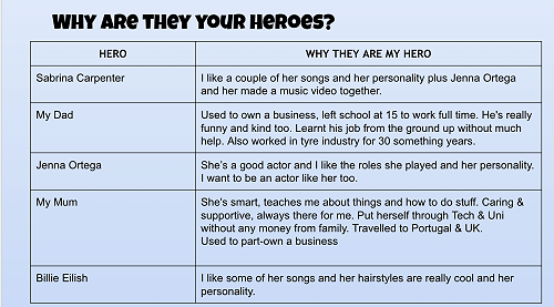 Kia ora e te whānau. Here are a few examples of student mahi into their inquiry. So far, we have been looking into ‘All About Me’ (strengths, weaknesses, skills) and ‘All About My Hero’ (who do we look up to and what skills and strengths they have). Our upcoming mahi will look into careers/jobs and future subjects at college. Ka mau te wehi Hokowhitu!