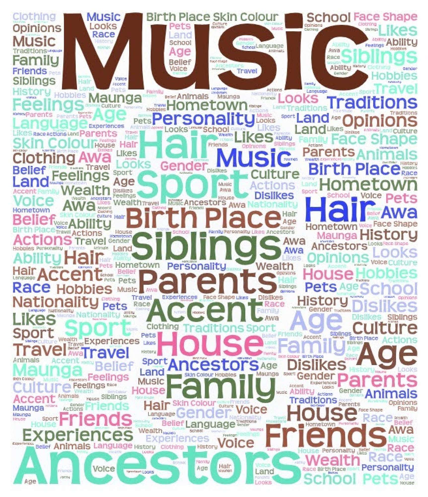Our current classes have just finished watching the ‘Speak no Māori’ documentary. This gives a brief overview of why Te Reo Māori was in decline and some of the revitalisation strategies that are continuing today. We unpacked what ‘identity’ means to better understand what Māori experienced when they described a ‘loss of identity’. Here is a snapshot of what the students thought contributed towards their identity.