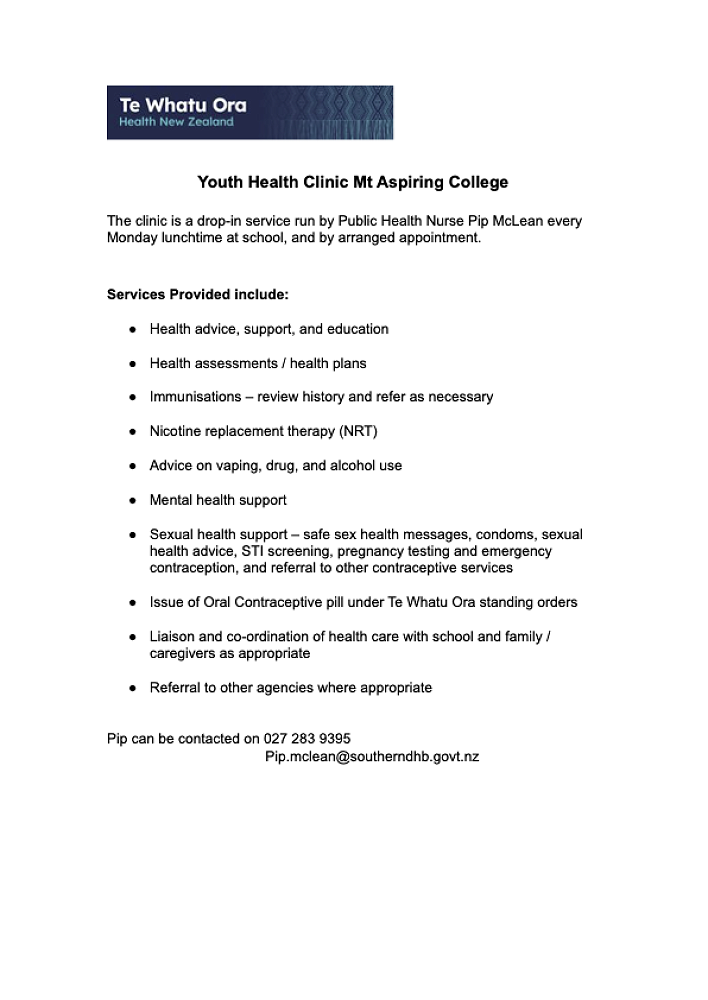 If you have any questions please email Lucy: radfordl@mtaspiring.school.nz