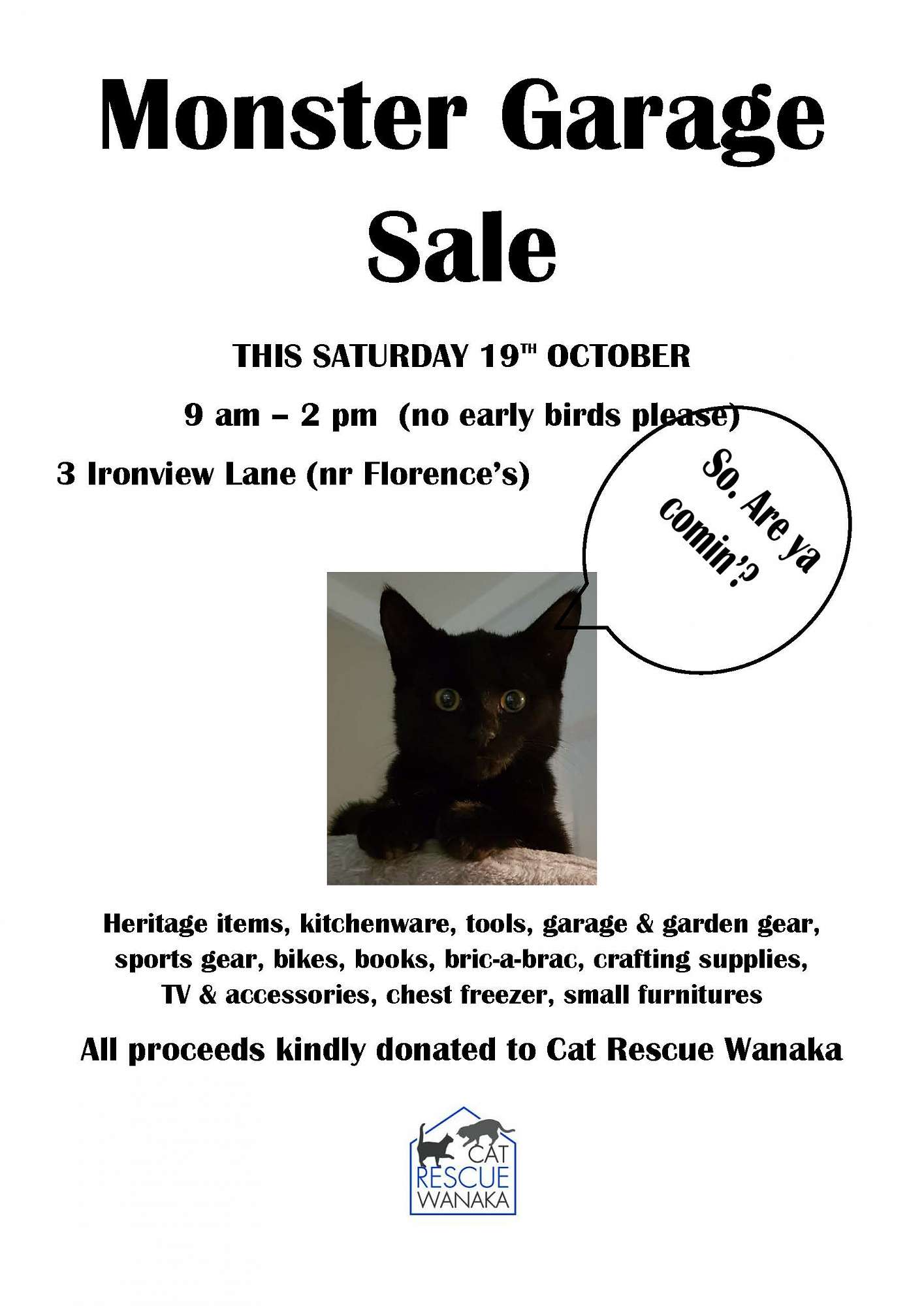 GARAGE SALE FOR WANAKA CAT RESCUE