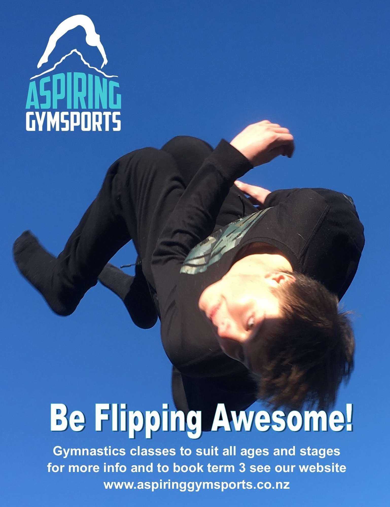 Aspiring Gymsports drop-in teen class runs on Friday nights, from 6.30 - 7.30 pm. $10 cash at the door. Aerials equipment, silk, trapeze, hoop plus all gymnastic equipment - beam, high bars, parallel bars, rings, tumble track and double mini trampoline. Come along and give yourself a challenge, guided by our coach. Learn a handstand, handspring, an aerial for your dance routine, or flip and tumble your way through a fun, active session. All abilities welcome. Text 0274 149 562 to let us know if you are attending.