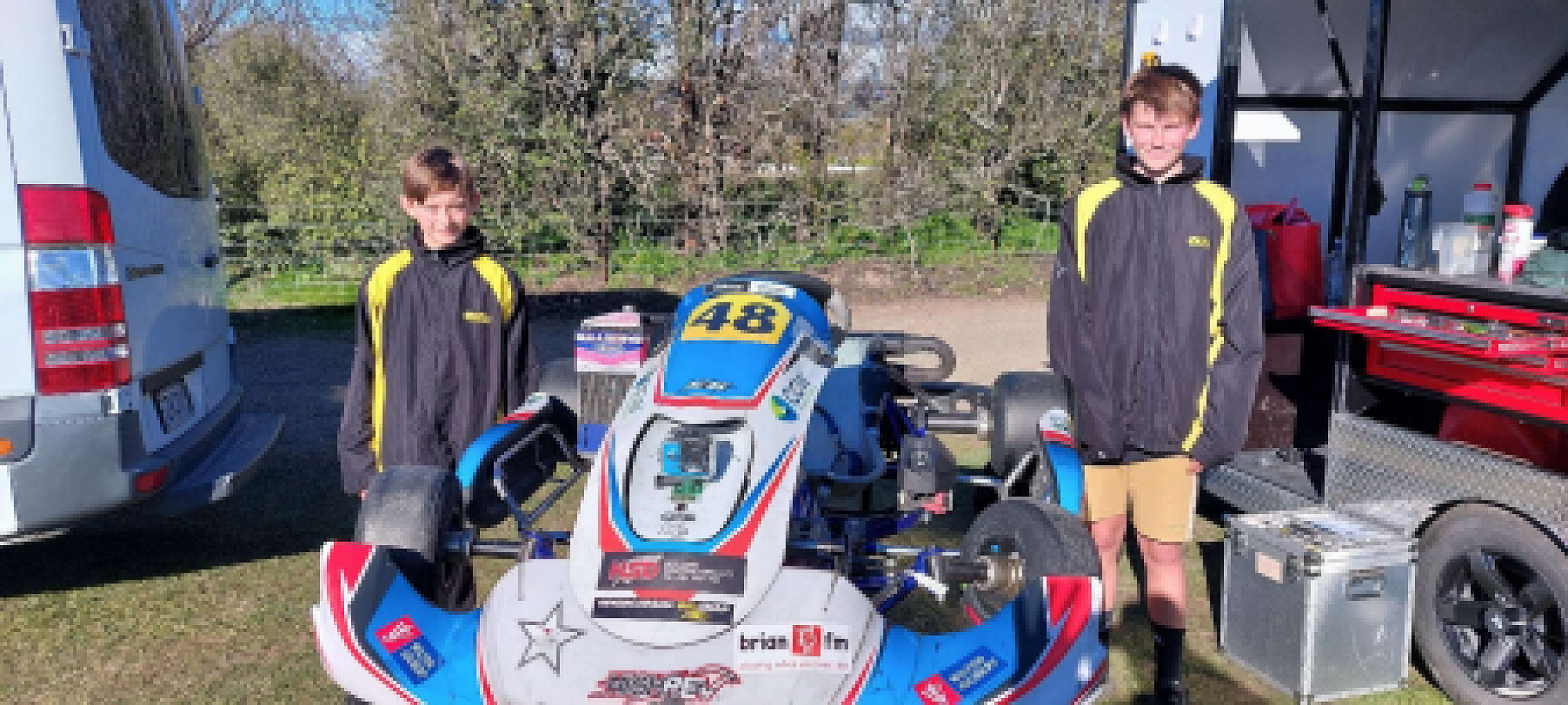 Over the school holidays Angus Wilton and George Tucker competed at the National Schools Karting Championships in Nelson. This was a two day event, with qualifying followed by three heats of 10 laps on the Saturday. Sunday was a pre-final of 15 laps (with grid positions determined by points from Saturdays heats) followed by a 20 lap final. The format of the event meant that the final was a “winner takes all” so it’s really the only race that mattered.