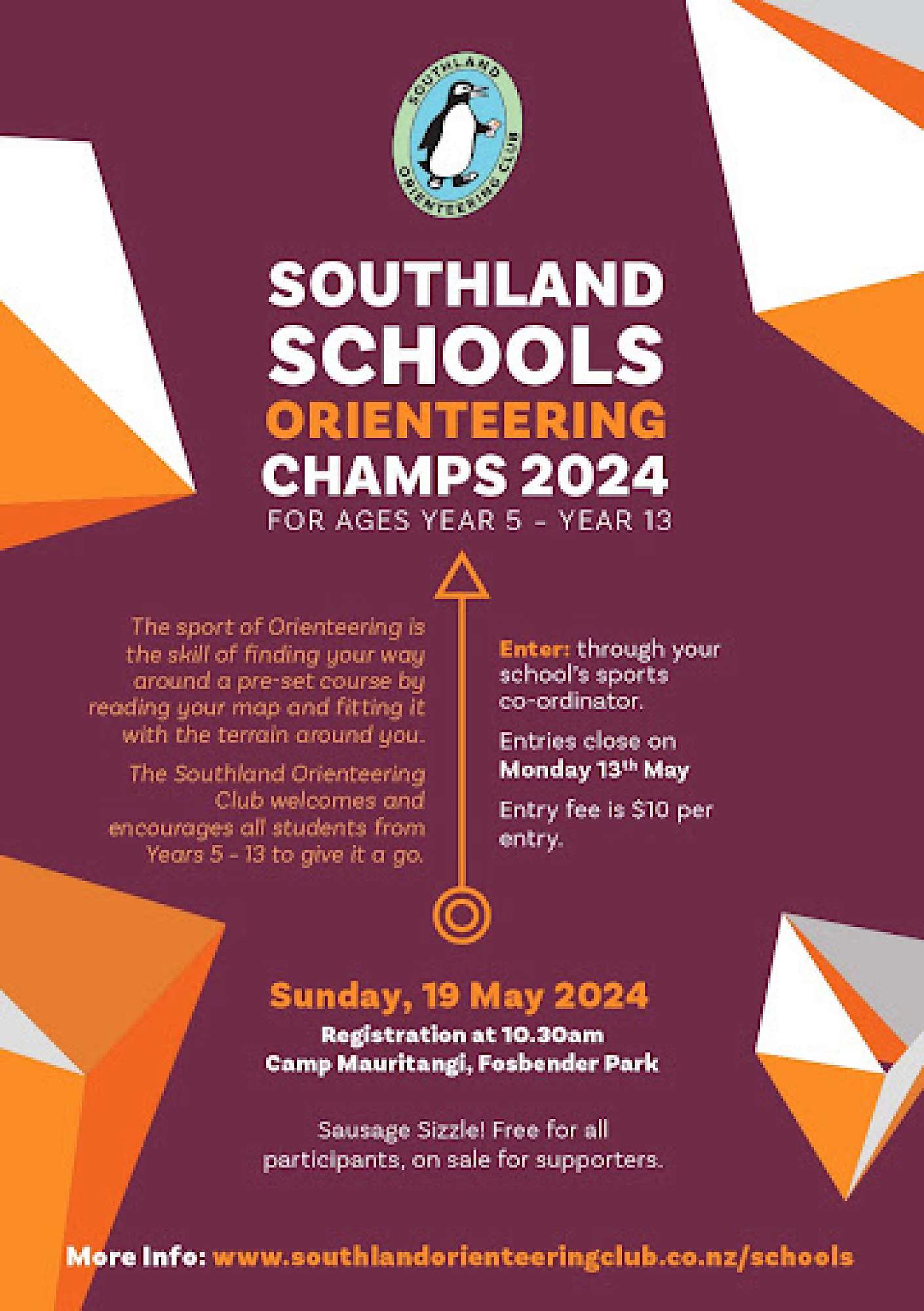 The Southland Schools Orienteering Champs is coming up on Sunday 19 May at Fosbender Park. Even though this is a Southland event, they have opened it up to Otago schools. This means that students competing in this event will appear on the results, however, they will not be eligible for certificates/placings since this is a Southland event.