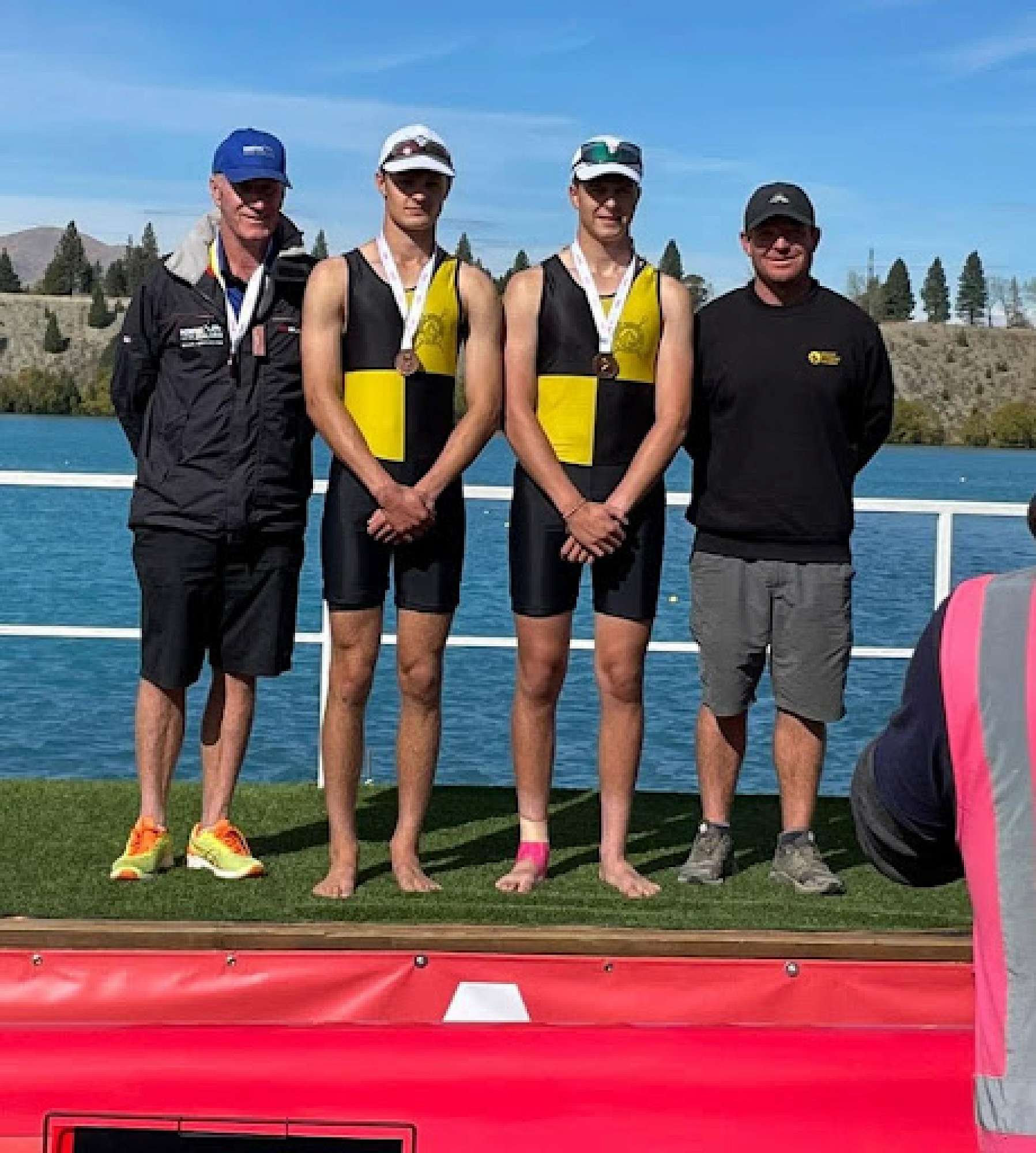 The boys U18 Novice 2x of Hugo Sinclair and Harry Hope brought home a bronze medal for the club, a satisfying and well-deserved result after a season of dedication and hard work. The Girls U18 4x of Annie Wells, Annika Massey, Lola Ritchie, Sienna Marsden + coxswain Caroline Smith placed 5th, and the U18 2x of Annie and Annika also placed 5th, with these U18 level performances being recognised by a Top Ten badge. The boy’s Novice U18 4x of Hugo Sinclair, Harry Hope, Will Pascoe, Alex Pederson + coxswain Caroline Smith finished 6th by a slim margin, and the very newly put-together crew of Lucy Radford, Sienna Marsden, Meg Ritchie, Catty David + coxswain Emily Hunt raced outstandingly in the Girls U16 4x to finish 8th.