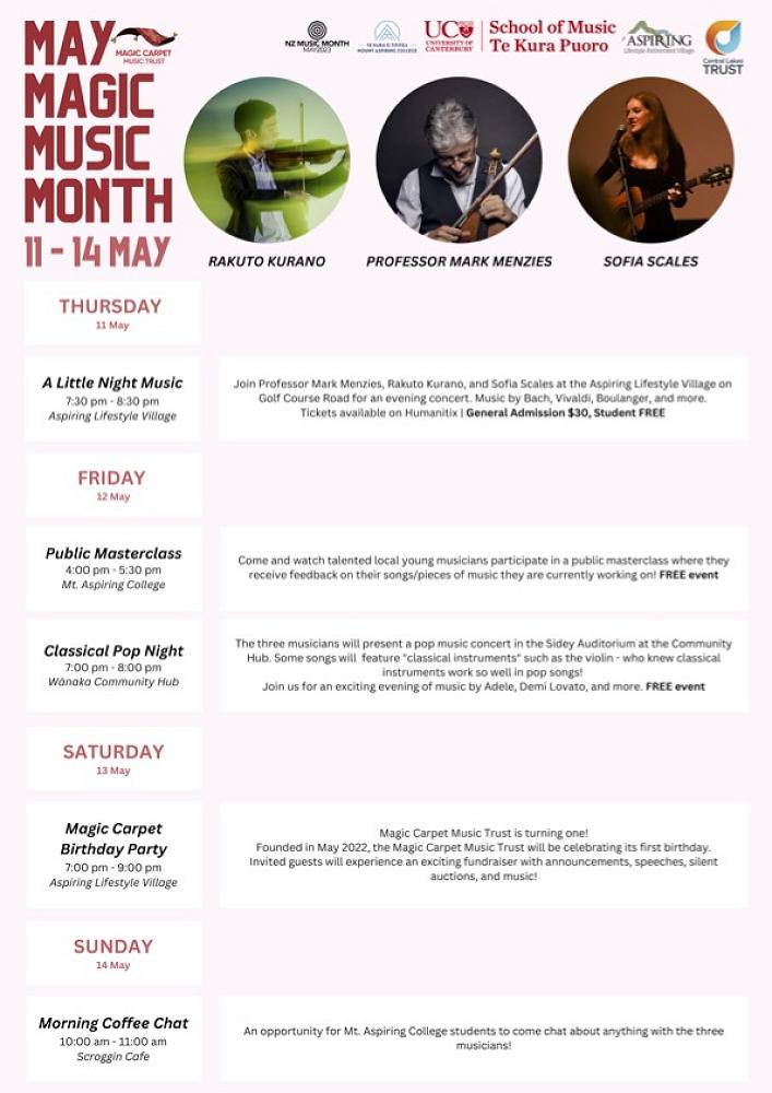 We have plans for future Sunday afternoon meet ups at 'Hello Ranger', Rippon pop-up restaurant, and next summer a vineyard and maybe even a BBQ at Wānaka Station Park. We hope to see you Sunday 7 May at 3.00pm at Cinema Paradiso and Next Chapter!