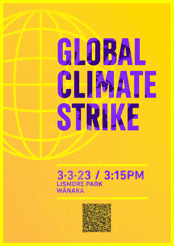 Lismore Park (opposite Mt Aspiring College) at 3.15pm or join the strike in town! Please bring as many people as you can, make posters, put up advertisements, and do whatever you want to spread the word about this great event. Let’s make sure we protect the beautiful whenua that surrounds Wānaka.
