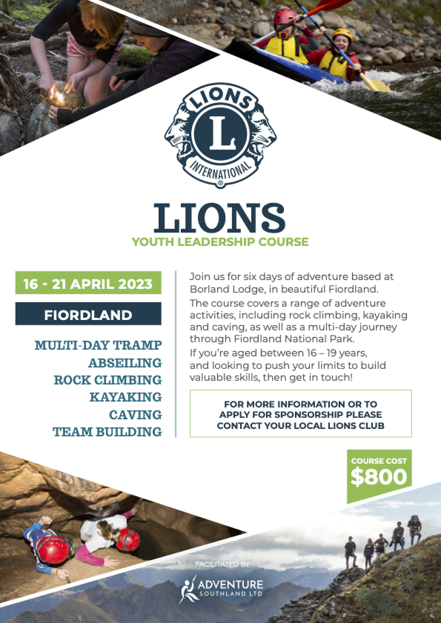 Spaces are available for young people aged 16-19 years to attend the upcoming course, and Lions Clubs throughout the district are prepared to offer generous sponsorship to help make this course more easily achievable.