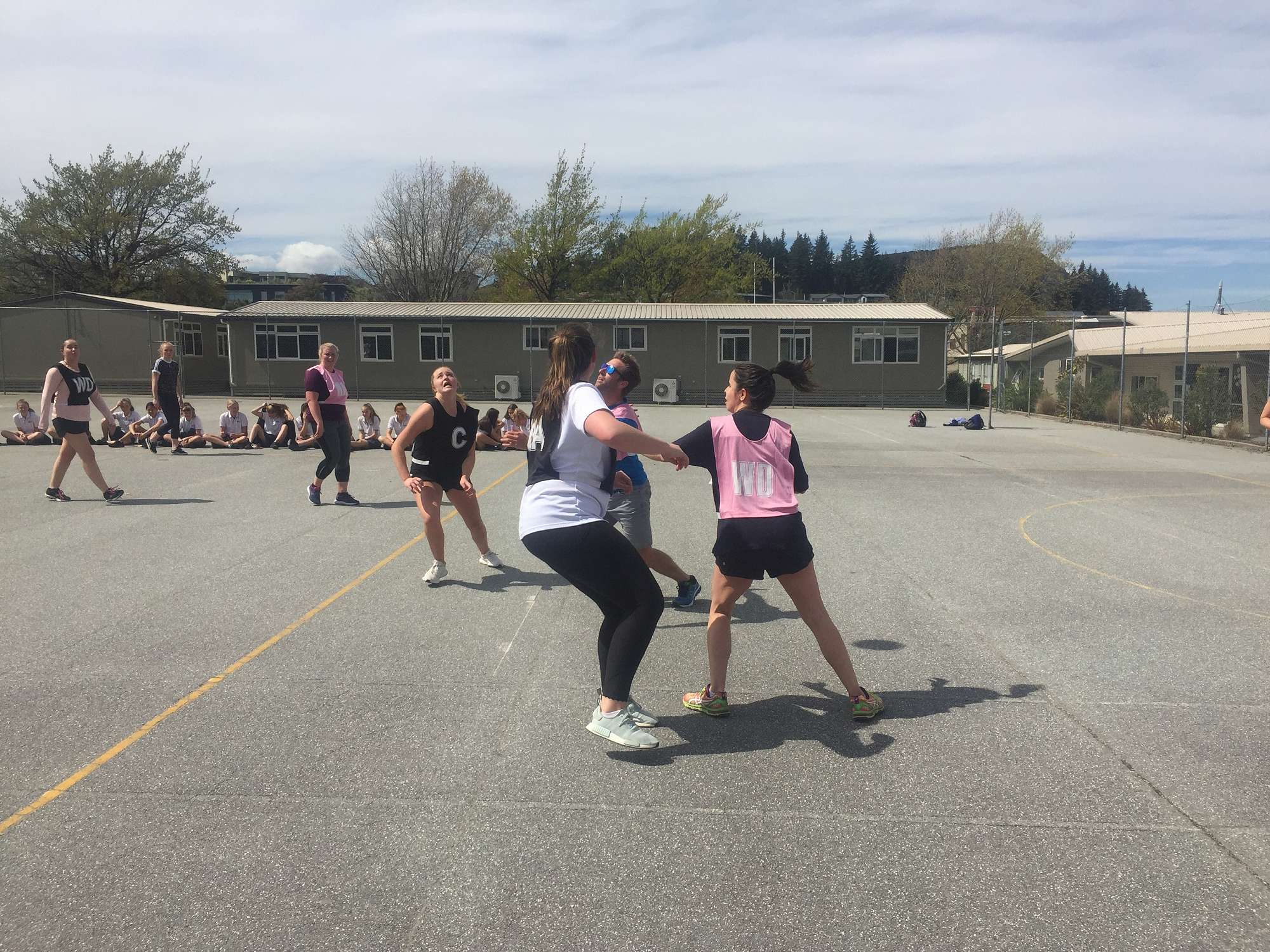 Staff drew first blood with a 9 - 4 win at lunchtime in the netball. Cheers to all the staff and students who turned up to play and support . Check out a few snaps from the game below: