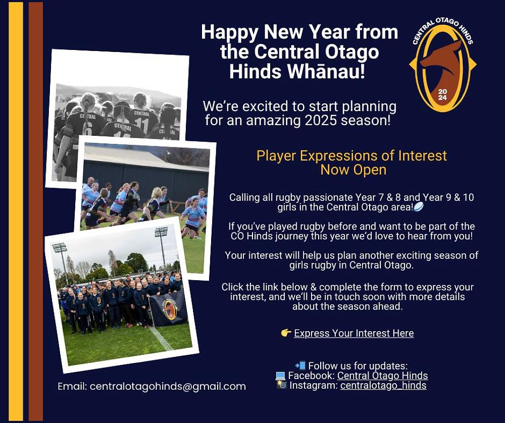 Please contact Belinda Sides (sidesb@mtaspiring.school.nz) or see her in Hāpori 5 if you are Years 9-13 and would like to play girls or boys Rugby for the school this year.