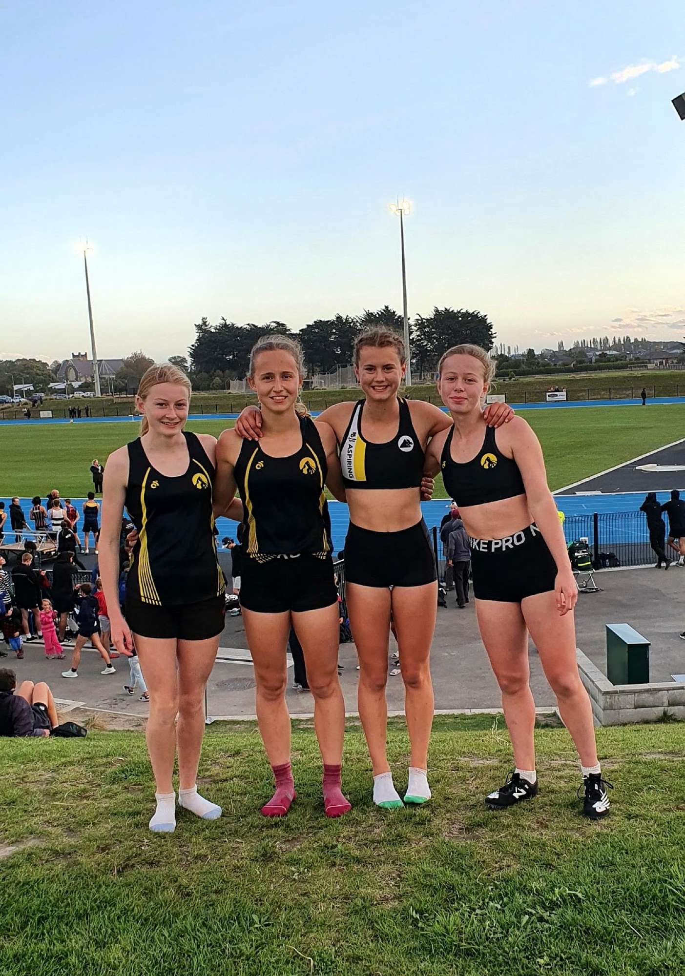 U16 4 x 400m Relay: Niamh Townsend, Chantel Thurston, Estelle Gellatly, Millie East