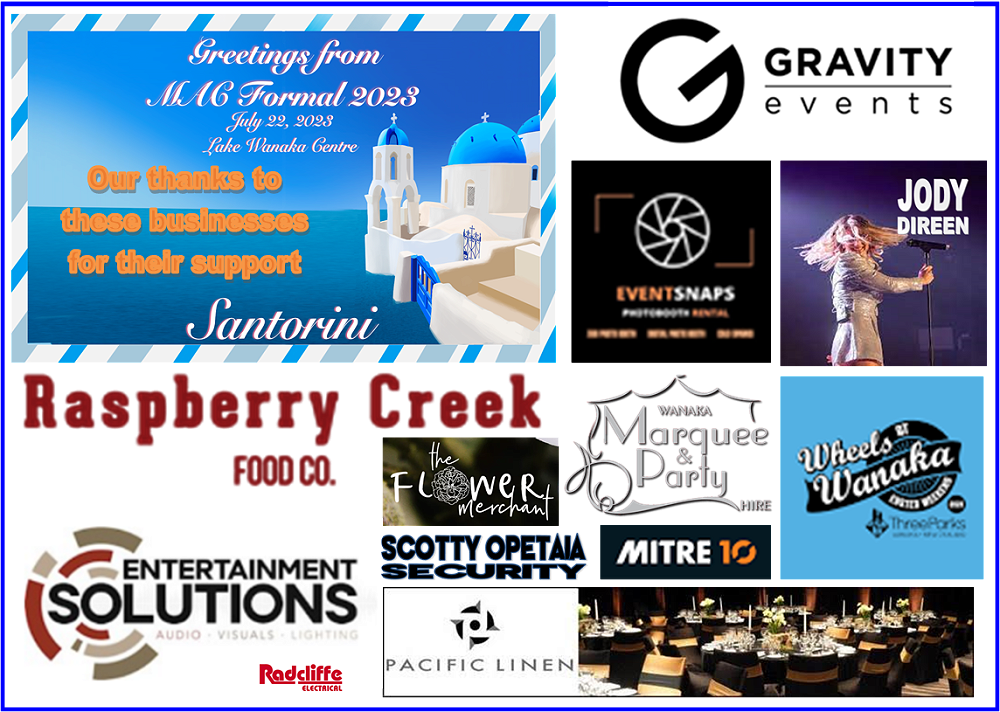 A great night was enjoyed by almost 300 senior students and staff at the Lake Wānaka Centre on Saturday night. Themed 'Santorini', students were surrounded by blue, white, and bright Greek island street scenes. A connection with the Mamma Mia movie made in this location was obvious as awards were presented to an ABBA songlist. Following dinner, musician Jody Direen inspired many to dance the night away. We are very grateful to the local businesses who supported the night. We expect to have photos in next week's newsletter.