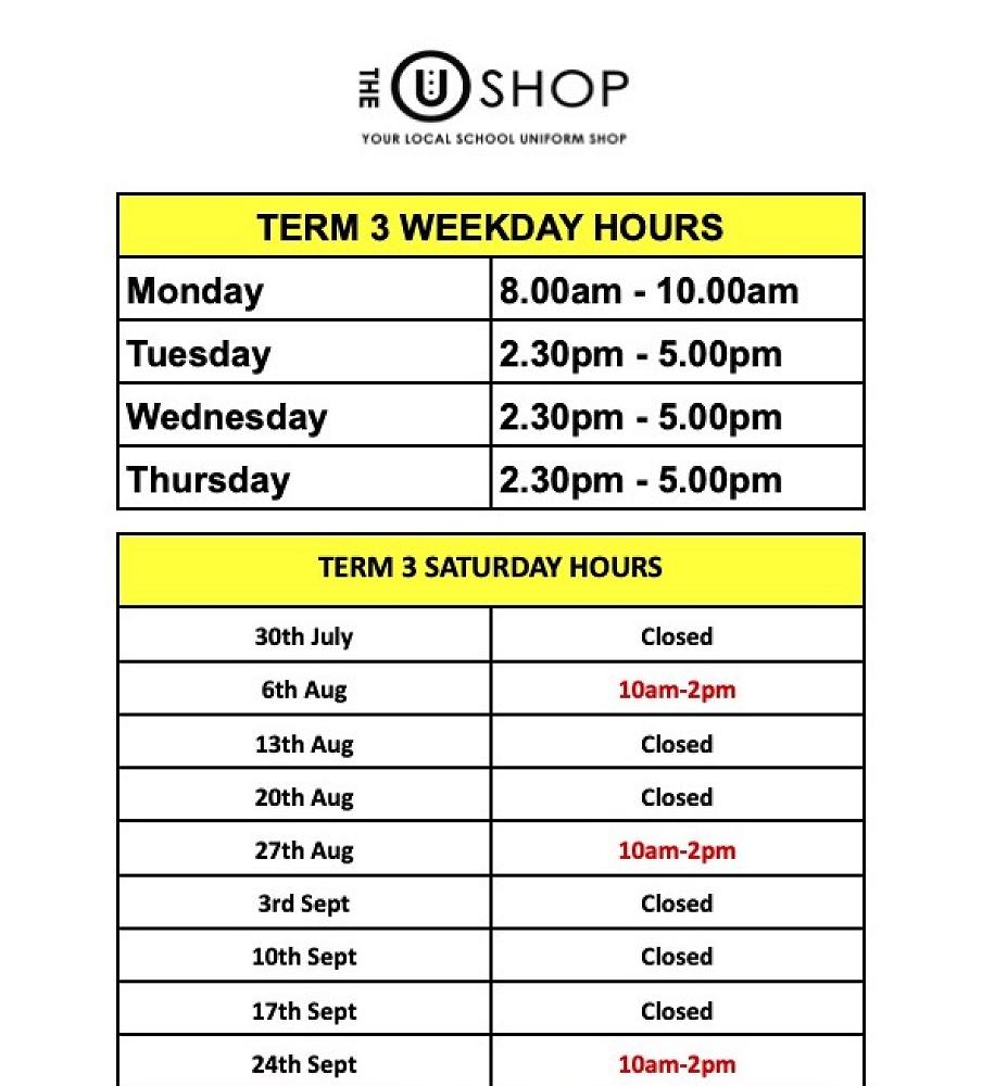 THE U-SHOP OPENING HOURS 2022 | Term 3