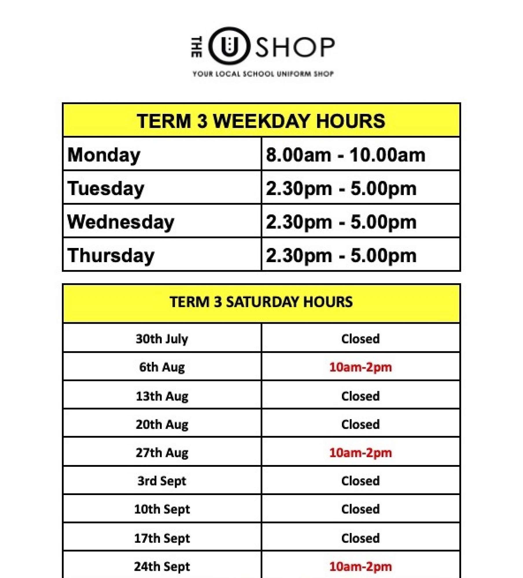 Thursday 29 September 2022 is the U-Shop's last day of trading for Term 3, 2022.