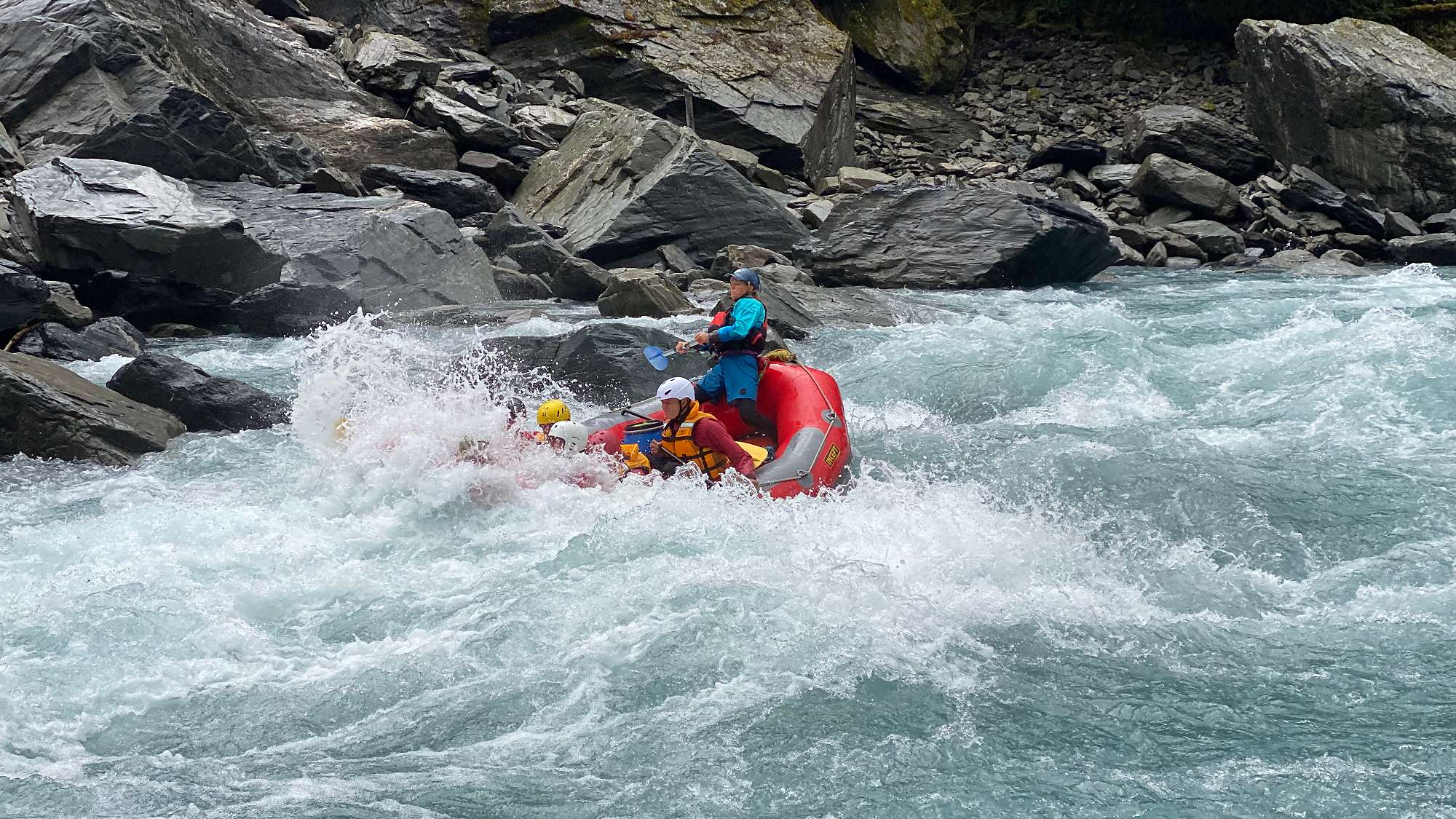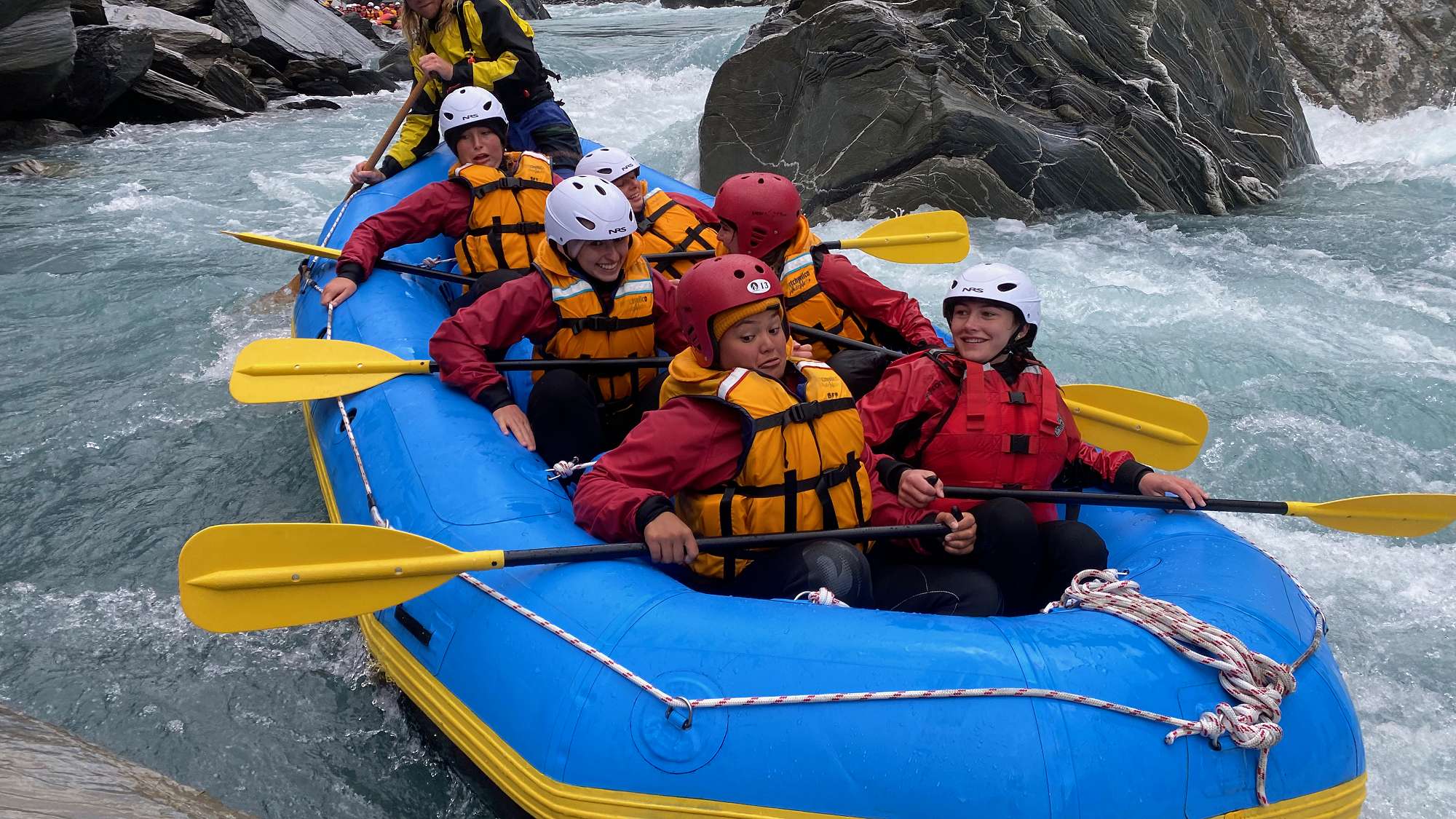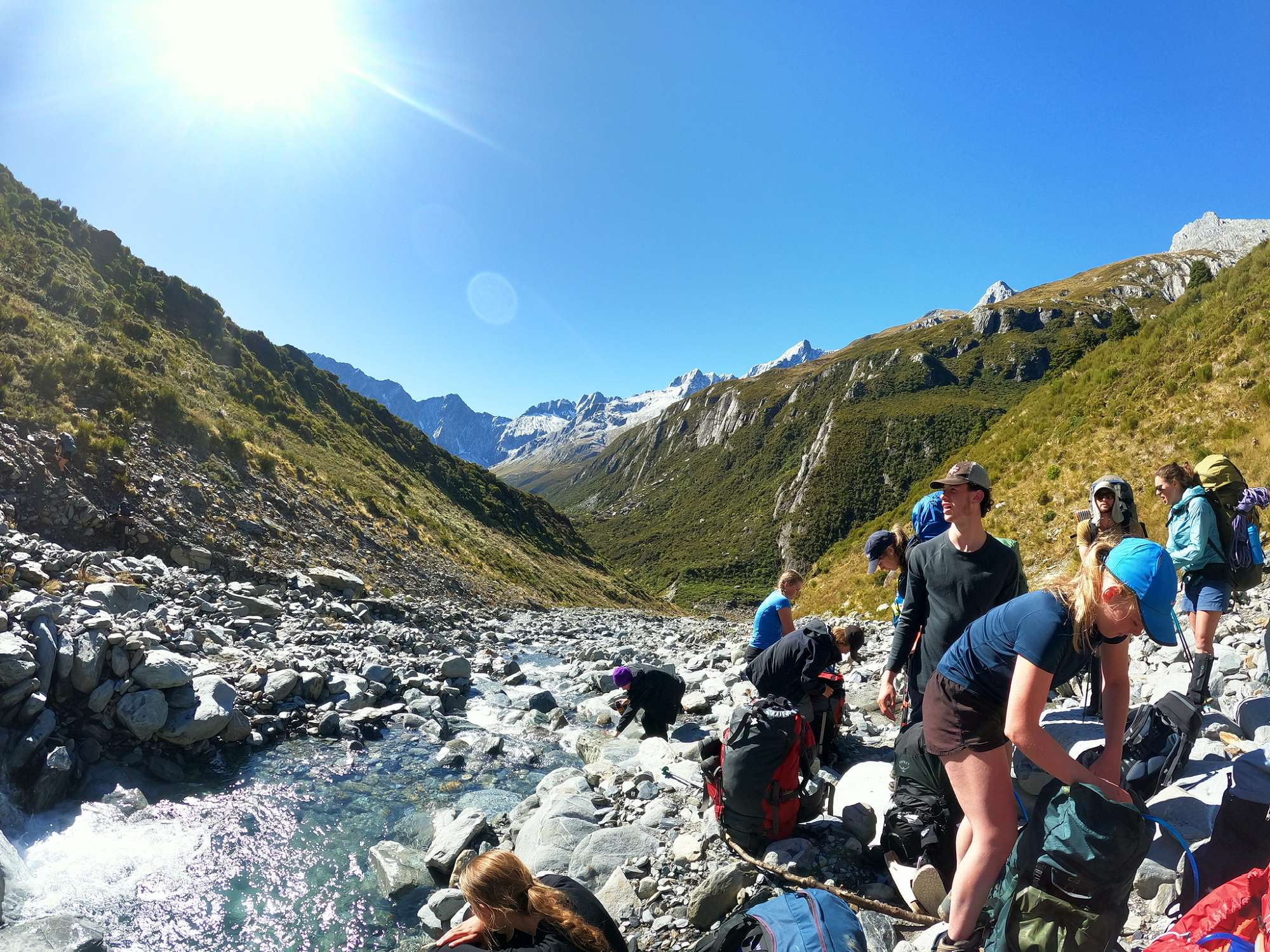 Our hostel students have had an action packed term of tramping, biking, climbing and kayaking with their weekend outdoor pursuits programme. This reached new heights (quite literally) last week when they embarked on a four day trans-alpine multi activity expedition across the Southern Alps. The first three days were an alpine hike from the Hopkins Valley, over the Main Divide at Brodrick Pass and finishing up on the banks of the Landsborough River near Creswick Hut. On the fourth day a team of raft guides led by Bob McLaughlin, owner of Wānaka based guiding company Best Foot Forward, flew in to lead them on the final leg of the journey whitewater rafting the Landsborough River.