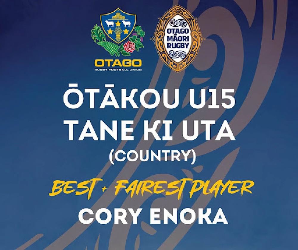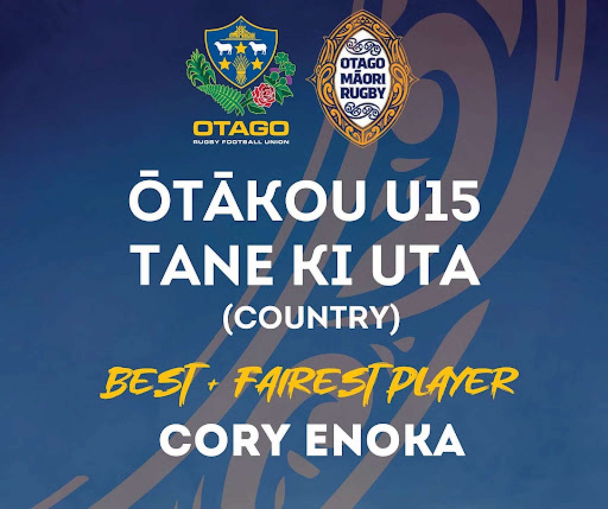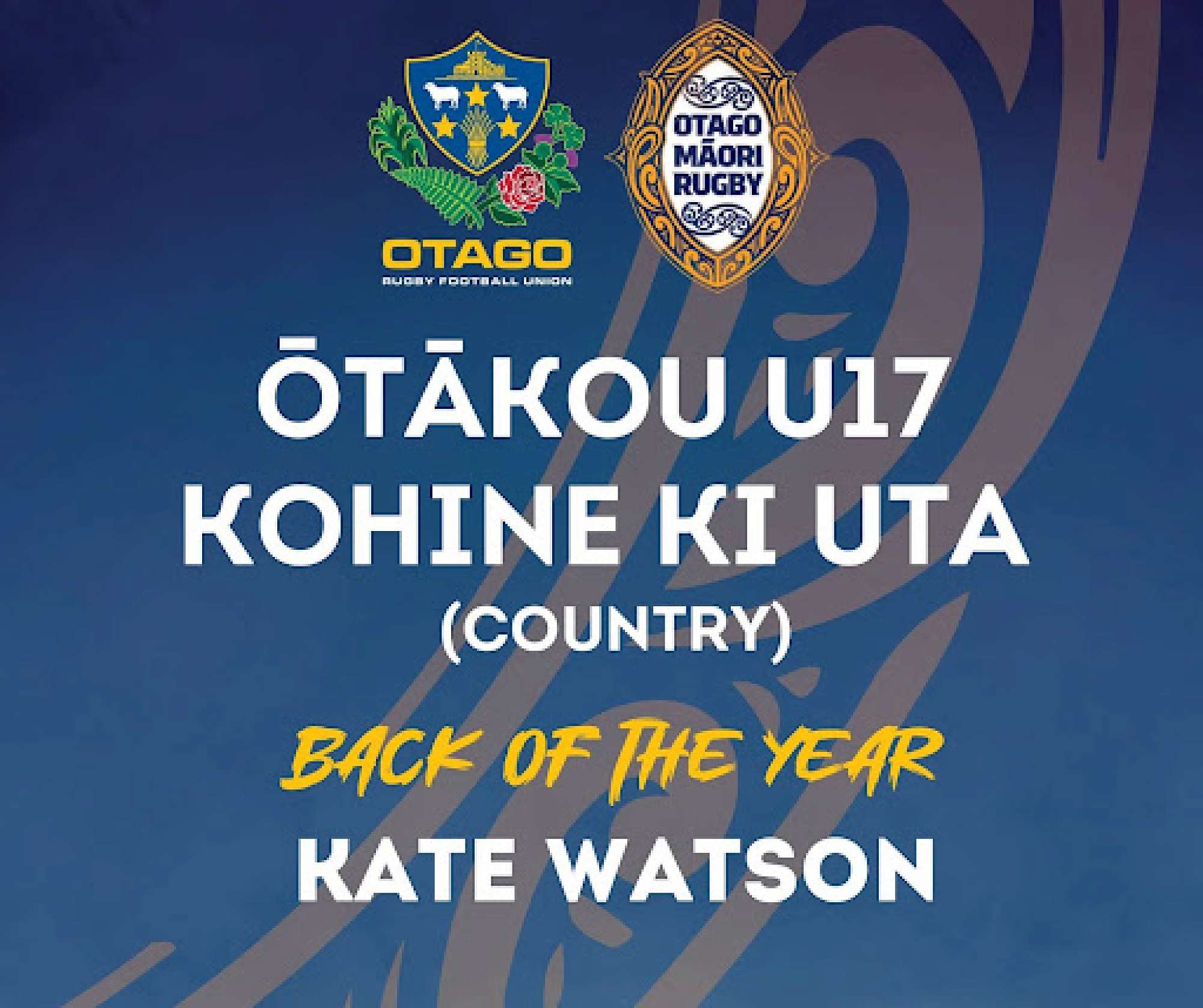 Special congratulations go to Kate Watson for receiving the Kōhine Back of the Year and Cory Enoka for receiving the U15 Tāne Best and Fairest player award, in the Otago Community Rugby awards