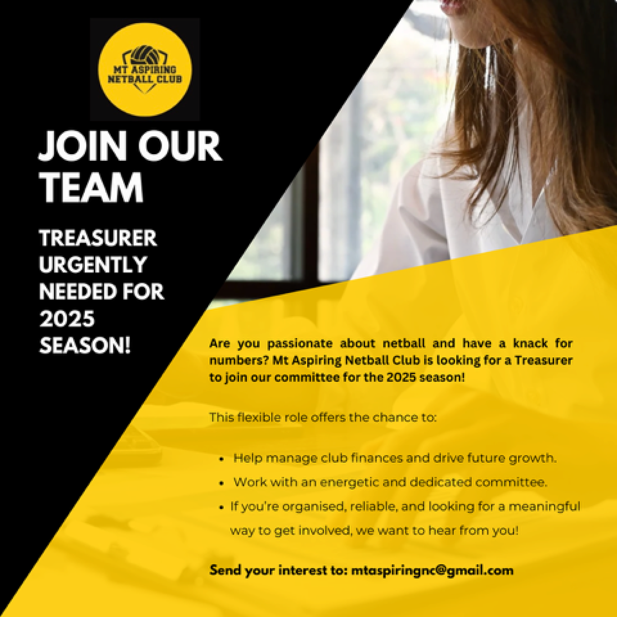 Do you have a passion for netball and a desire to help shape the future of our up-and-coming Silver Ferns? Mt Aspiring Netball Club is on the lookout for coaches, assistant coaches, managers, and interested parties for teams from Year 7 to Year 13.
