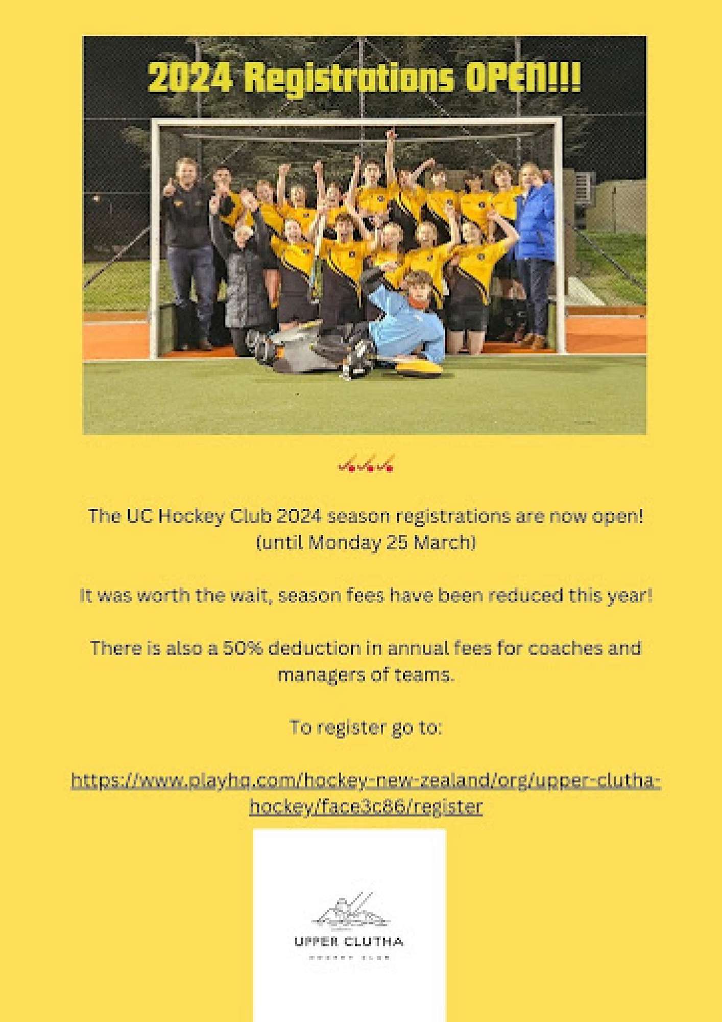 The UC Hockey Club 2024 season registrations are now open! (until Monday 25 March)