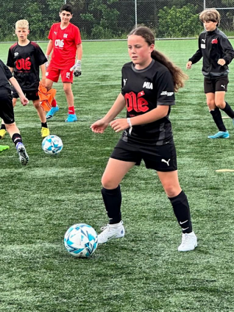 She currently plays for the Wānaka Football Club and also trains twice weekly in the Ole Football programme year round. Last year Mia was selected (along with a few local boys) to travel to Wellington for a week-long training camp with the Ole Football Academy, which was a fantastic opportunity for her to see where football might lead her in the future.