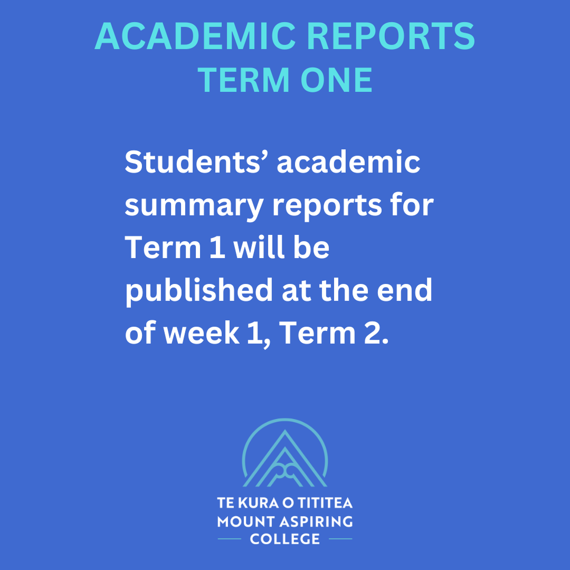 IMPORTANT NOTICES Mount Aspiring College — April 11th, 2024 This term's academic reports will be published at the end of week one in Term 2. Image by: Mount Aspiring College Image by: Mount Aspiring College