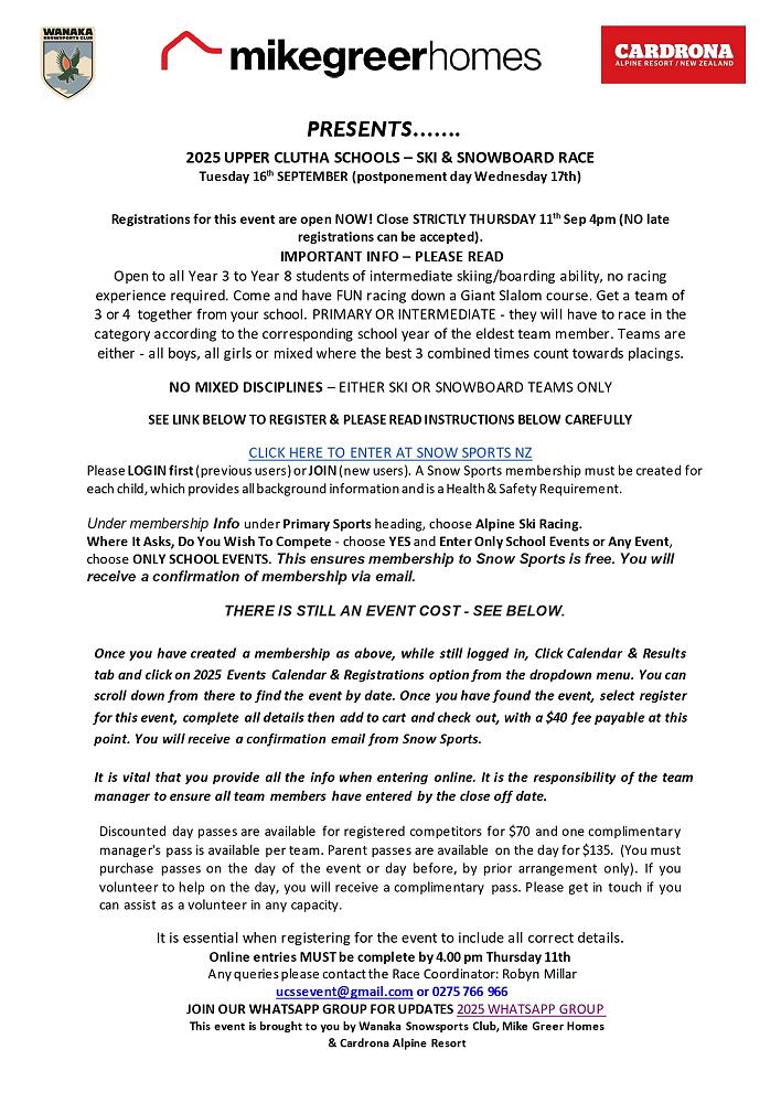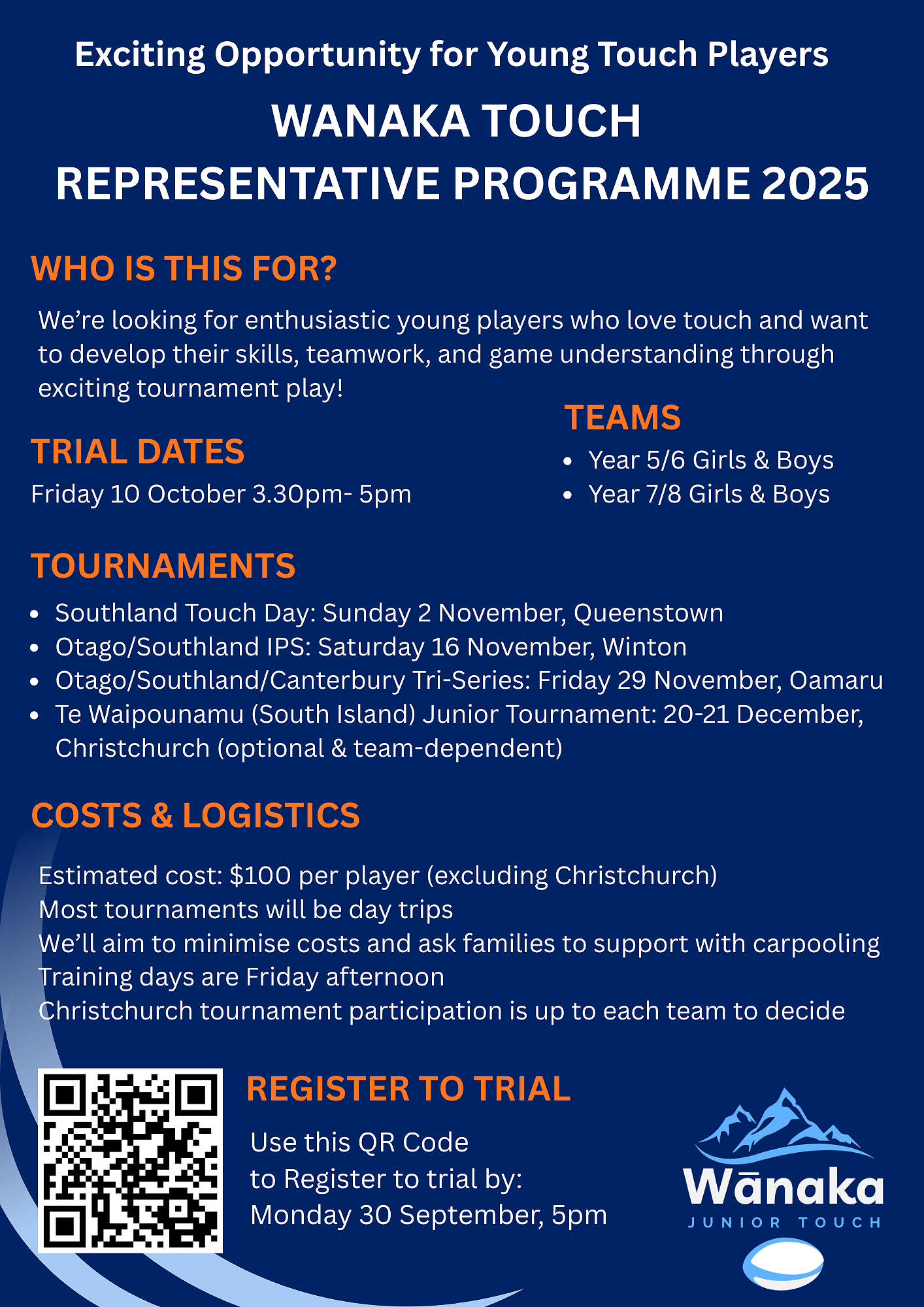 The term calendar is an overview of the sports events that are happening this term. If you have any questions about any upcoming events, please come and see Laura, Lauren and Di at the Sports Hub or email us at sports@mtaspiring.school.nz