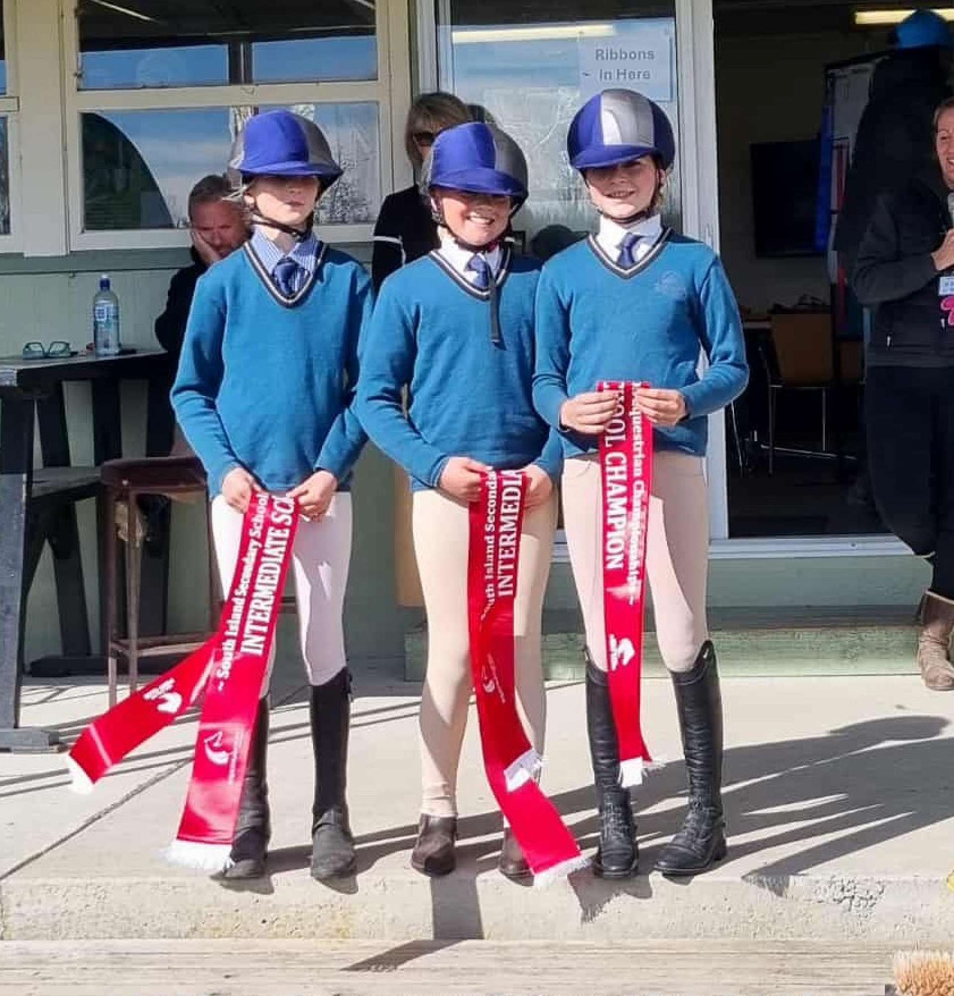 Congratulations to students Boh Fairmaid (Year 7), Poppy Gray (Year 7) and Millie Simms (Year 8) who represented MAC at the Equestrian South Island Interschool Championships in Christchurch last month, winning the overall junior team award for the cross-discipline eventing. They also came second in the competitive trail riding discipline, and fourth in dressage.