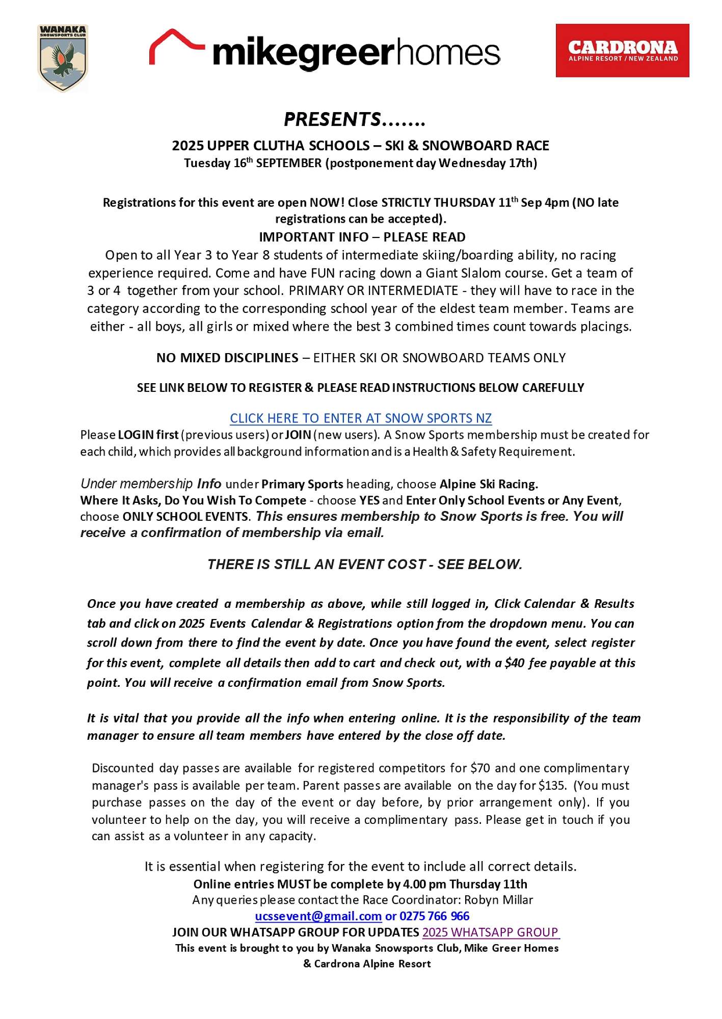 Almost 70 MAC students travelled to destinations across the South Island last week to participate in this year’s School Sport New Zealand Winter Tournament. A huge thank you to all the coaches, parent managers, and teachers-in-charge who travelled to the tournament and supported our students. We really appreciate you giving up your time and working so hard for the team—we couldn’t have done it without you.
