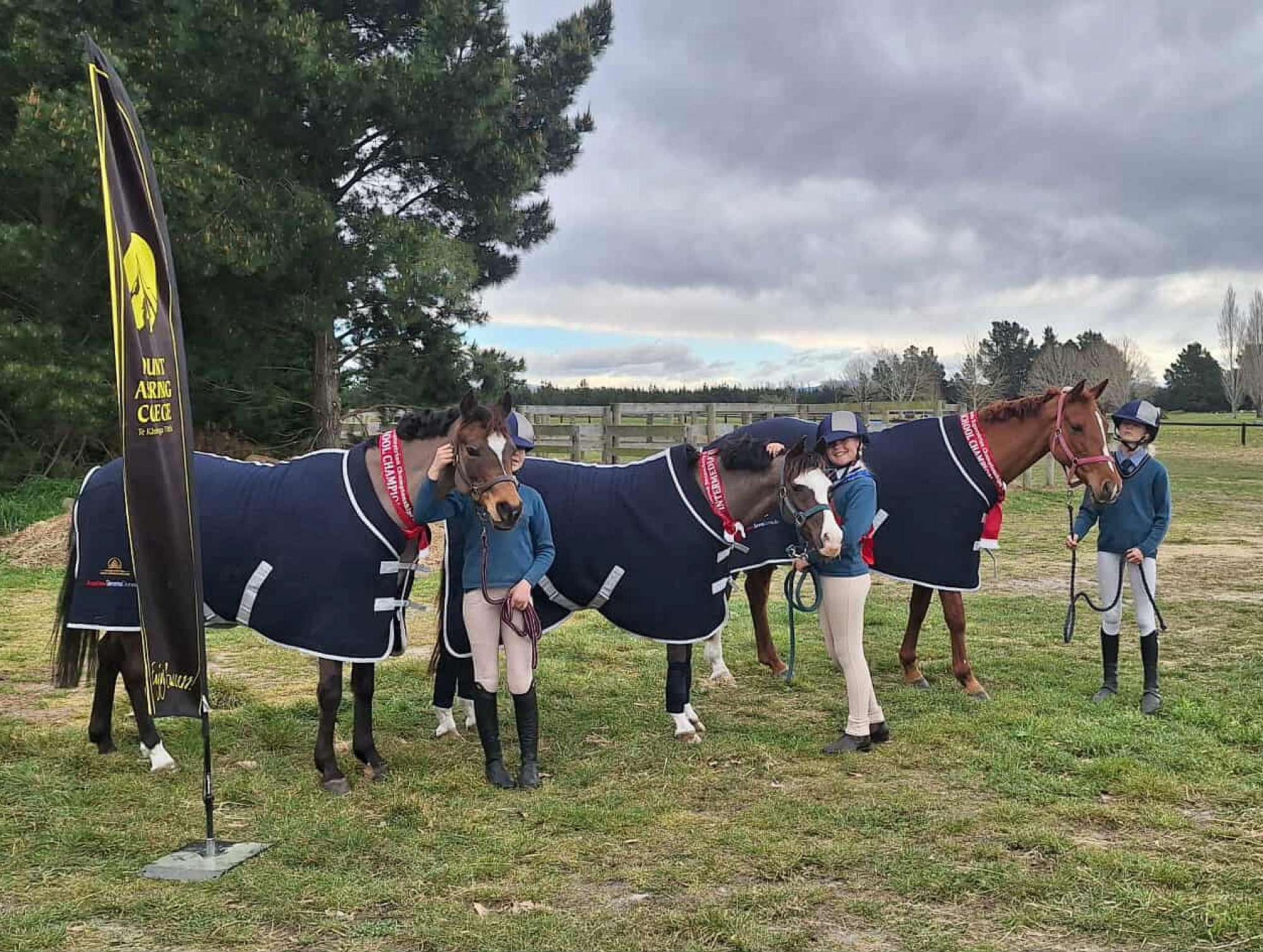 We would like to thank the team’s sponsor Andrew Simms of the Andrew Simms car dealership in Dunedin who kindly sponsored helmet covers, saddle pads, horse covers and browbands. Thanks also to the three mothers who supported the riders throughout the event.