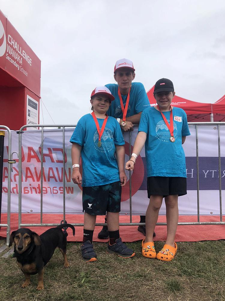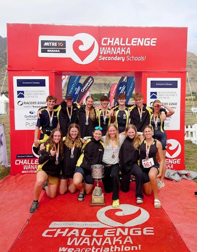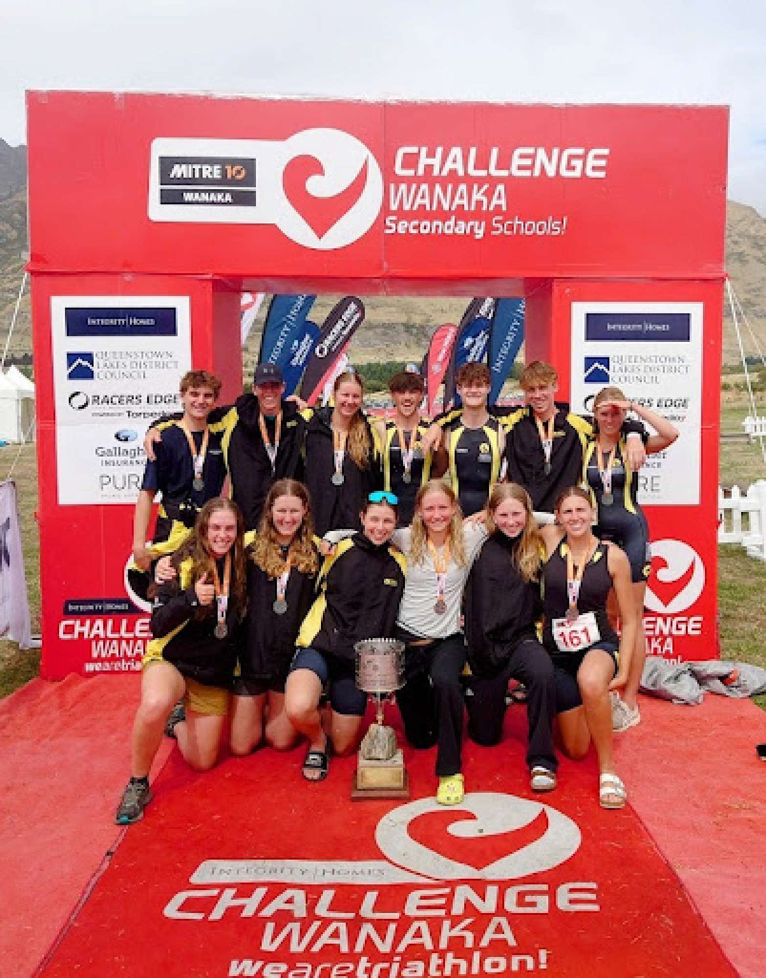 On Saturday, a team of four Year 13 students took part in the Integrity Homes Challenge Wānaka Half Ironman. The event was a 1.9km swim (Josh Moody), a 90km bike (Tom Sides and Hugo Sinclair) and 21.1km run (Zavier Taylor and Josh Moody). They each put in a strong performance and took out the ‘school team’ category in a time of 4 hours and 40 minutes. They also finished a very impressive fifth place overall, out of 115 teams.
