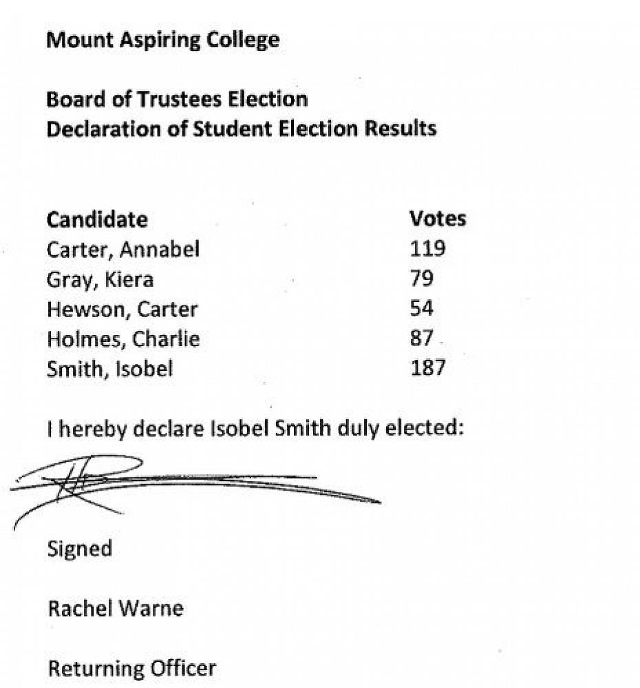 Isobel Smith has been elected as the MAC BOT Student Representative for 2020. Congratulations Isobel!