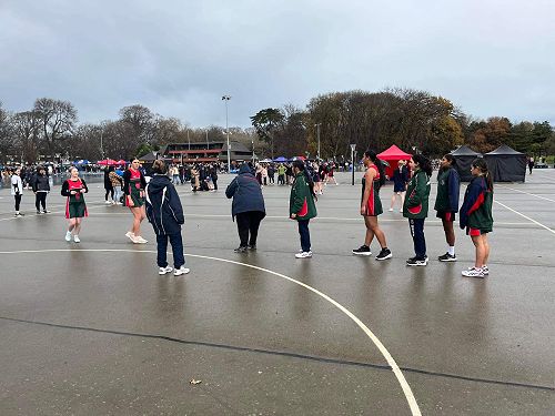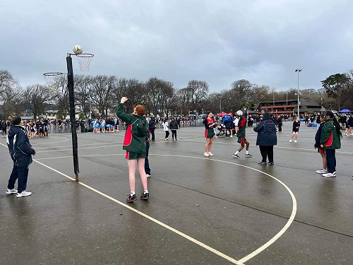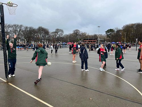 Day 2 of the SISS Junior Netball Tournament in Christchurch saw the team start at 9.30am against Hornby High School. It was a closely fought game but we ended up losing 18-14.