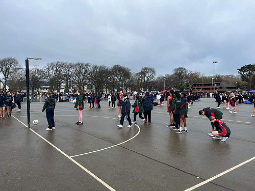 Warm up on the first day of the SISS Junior Netball Tournament in Christchurch, saw our Mountie girls off to a good start.