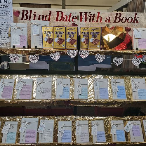 Visit this articleBlind Date with a Book is a hit again this year. Books are selected by our wonderful team of student librarians, then beautifully wrapped up and a brief description of the book attached on the front.