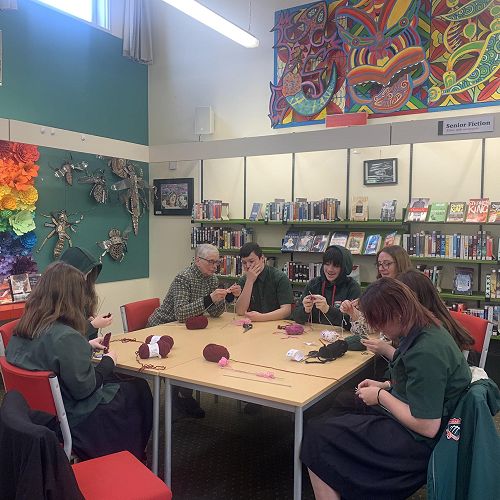 Visit this articleOver the past few weeks our TikiTextile Academy Class has had some lovely ladies come to school from the Timaru Library Knitting group to teach them some techniques of knitting.