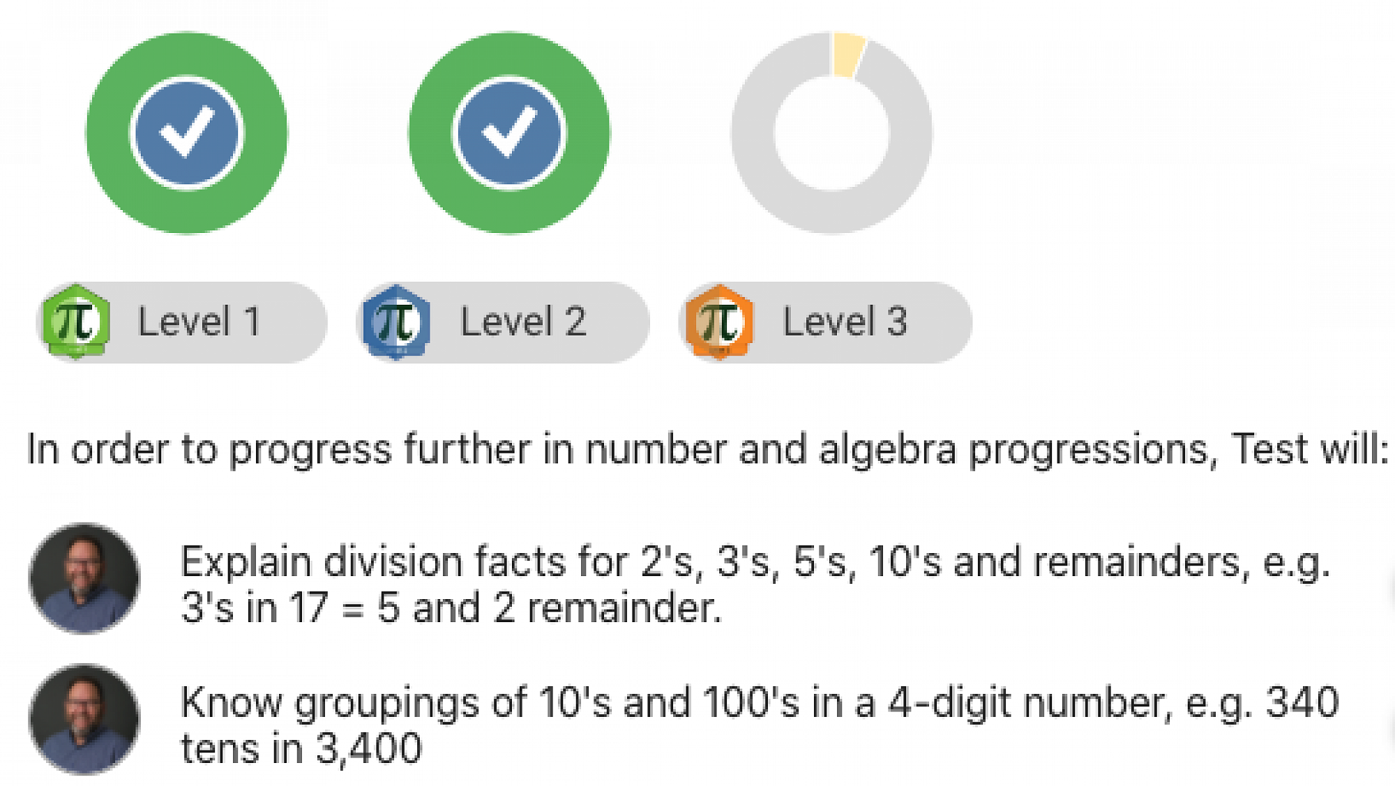 Goals are set by the teacher, and as students achieve these goals, teachers will mark these as achieved and others will be set. You can see these by using the dials, as well as seeing the goals already achieved and yet to be set. One of the main advantages of having this style of reporting is that at any one time, a parent can see how their child is progressing, where they should be in relation to the school expectations, and their future goals. You will be able to see progressions for Reading, Writing and Mathematics.