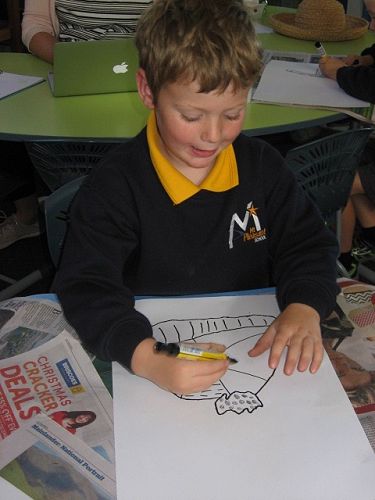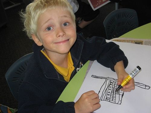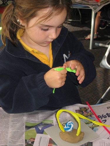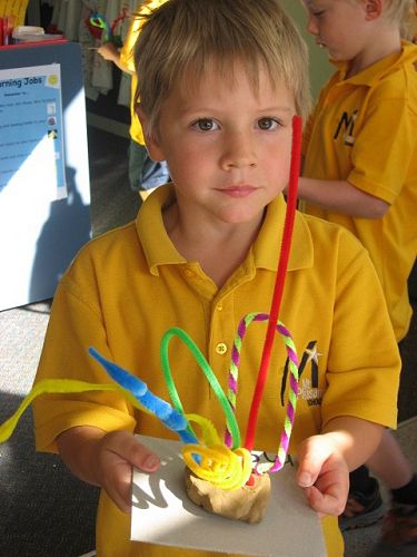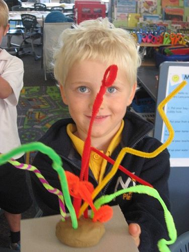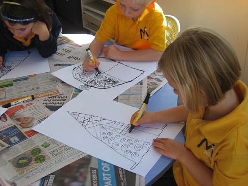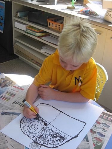 We experimented with changing straight lines into different lines like zig-zags, curves, loops and squiggles etc. We made our own line sculptures, then we experimented with drawing lots of different lines. We used our new line knowledge to design our own ‘silly hats’. Pop into Basecamp to have a look! We can’t wait until our next art day!