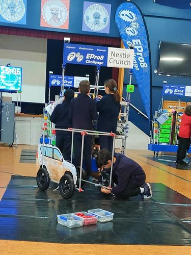 This competition is called Epro8 (pronounced E-pro-8). Each team of 4 students are given the same challenge to complete and have 4-5 hrs to build their structure and film the mechanisms.