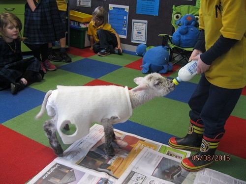 Lucy the lamb came in to visit Basecamp today. She is 12 days old. Basecamp loved feeding her lunchtime milk!