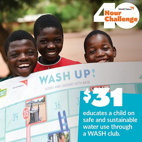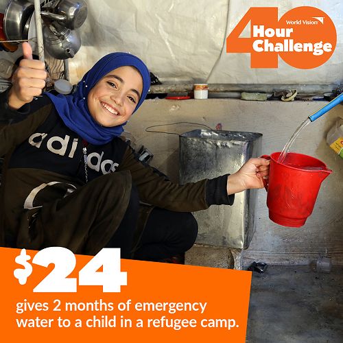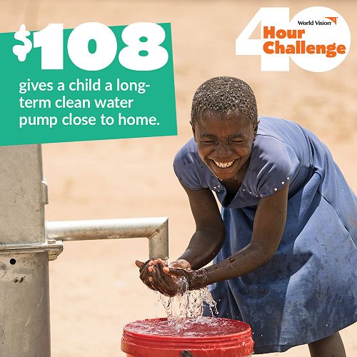 Right now, your World Vision 40 Hour Challenge is your chance to change a child's world with clean water. 40 hours? Challenge accepted!