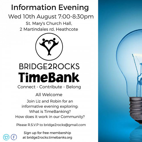 What is TimeBanking? How does it work in our community? Come along to our information evening next week to find out! See flyer below for more information, or check out our website here