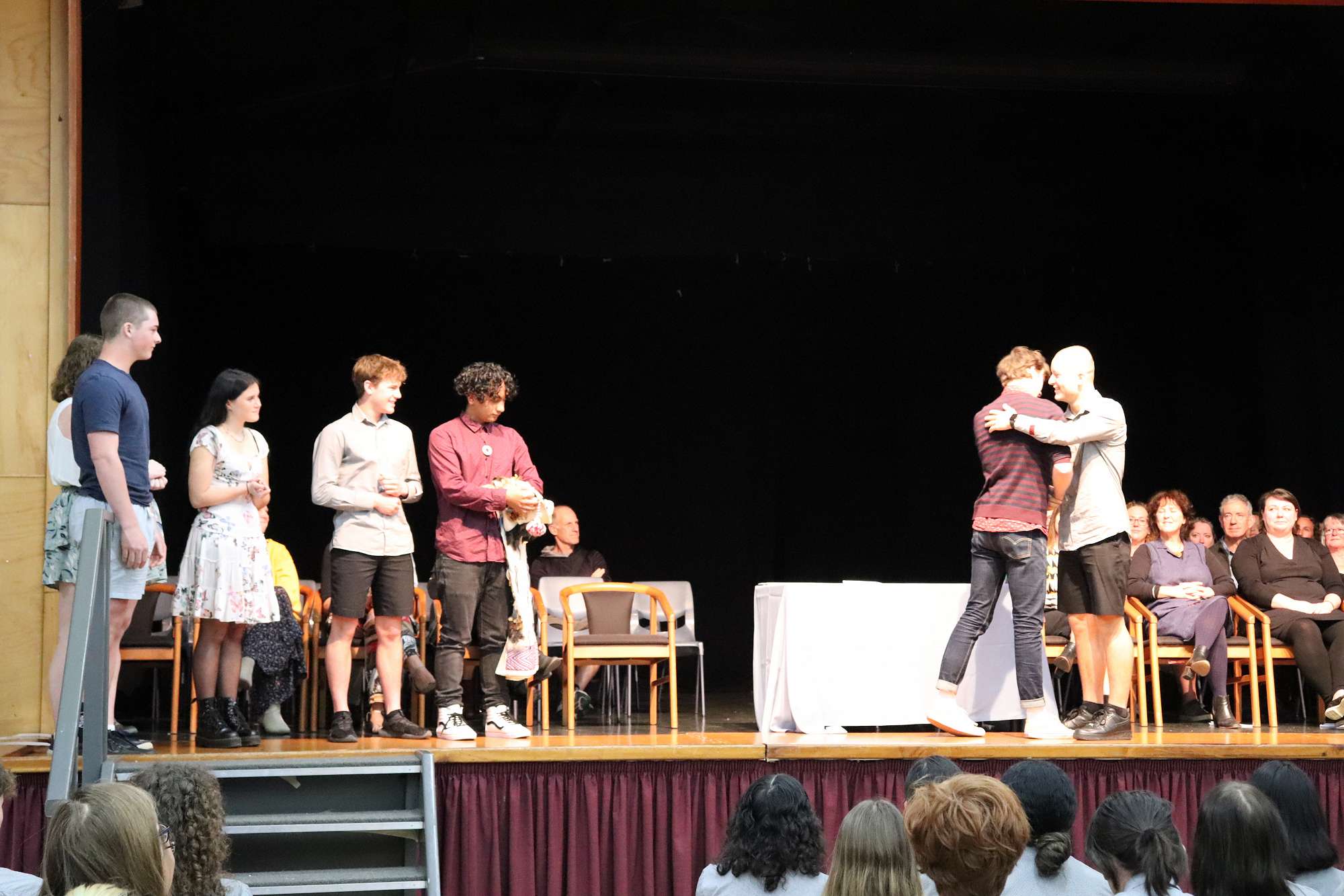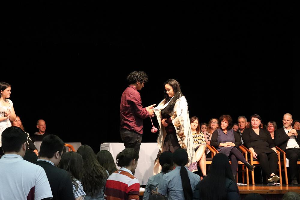 All six leaders were acknowledged on stage for their service at Tuesday's prizegiving. They then welcomed onstage next years student leadership team, who had been voted for by senior students and staff the week before.