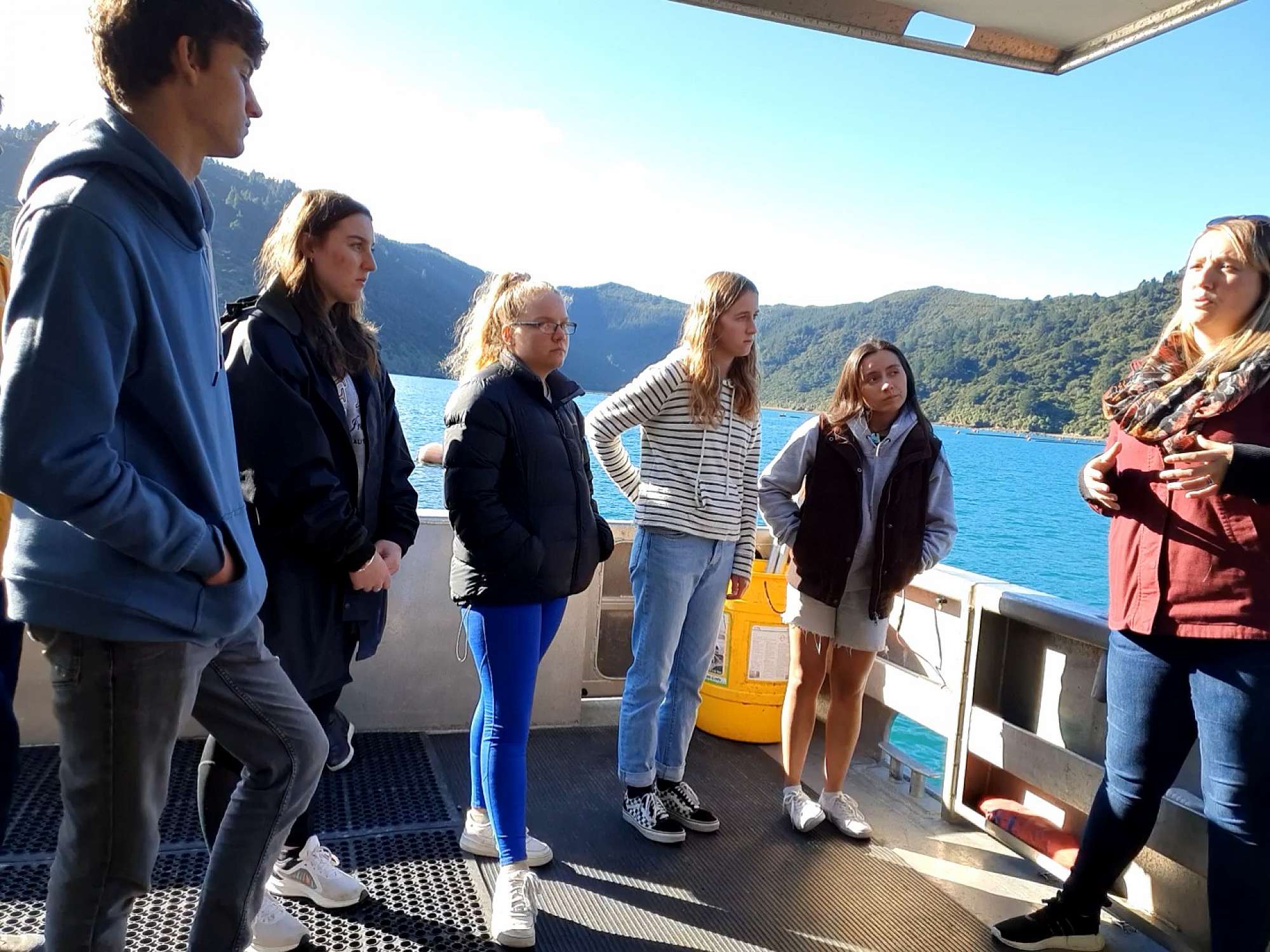 On a beautiful, sunny, flat, calm Wednesday, thirteen Year 12 and 13 students and Primary Industries teacher Esther Hancock set out from Nelson Port aboard the MV Grey Heron; a rather beautiful catamaran mussel farm boat.