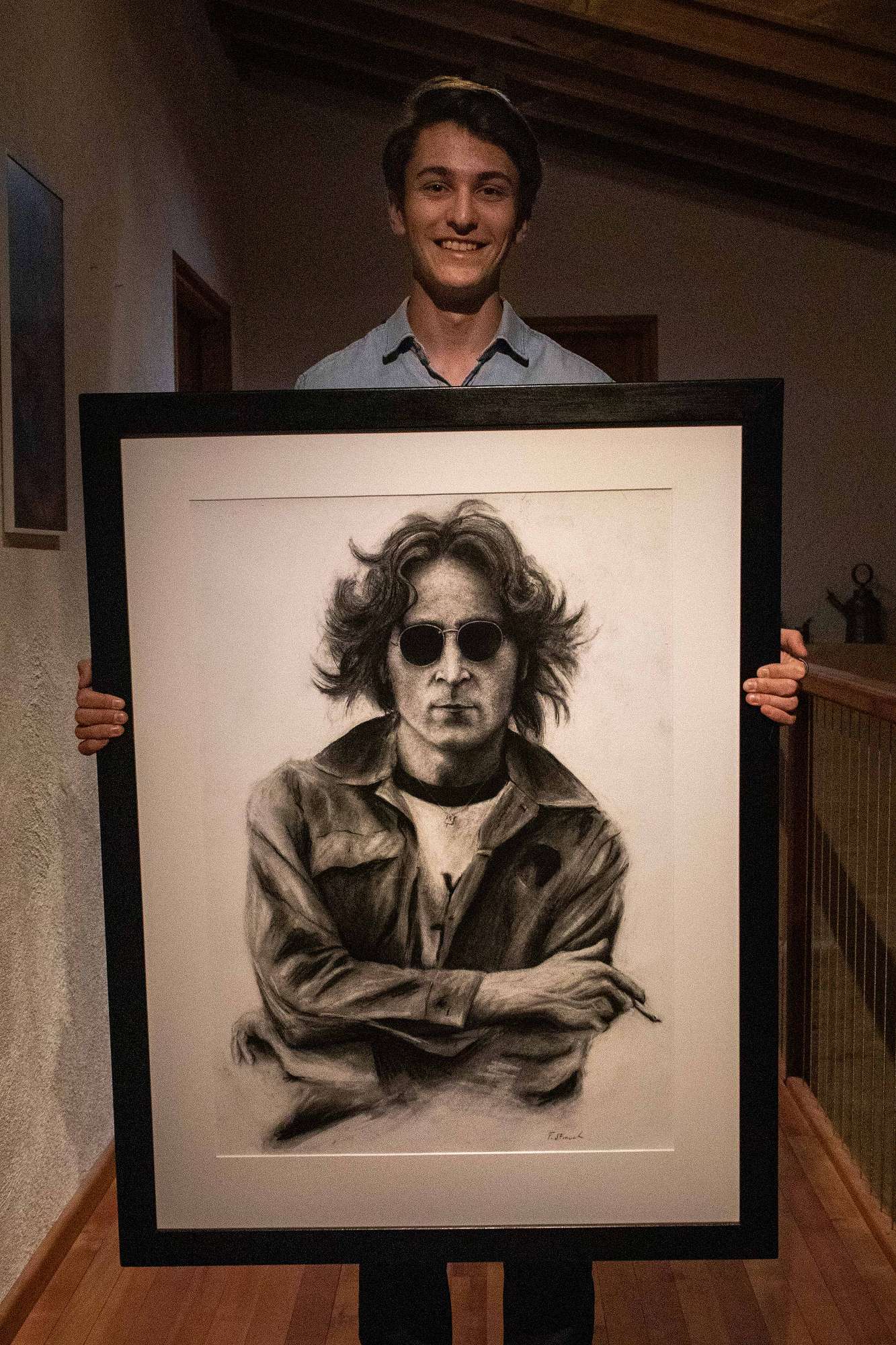 Fabian's drawing is not part of his NCEA work. Instead, it came from a personal challenge he set himself at home to see how realistically he could draw a human face and portrait. As his model, he chose a famous photograph of John Lennon, taken in New York in 1974.