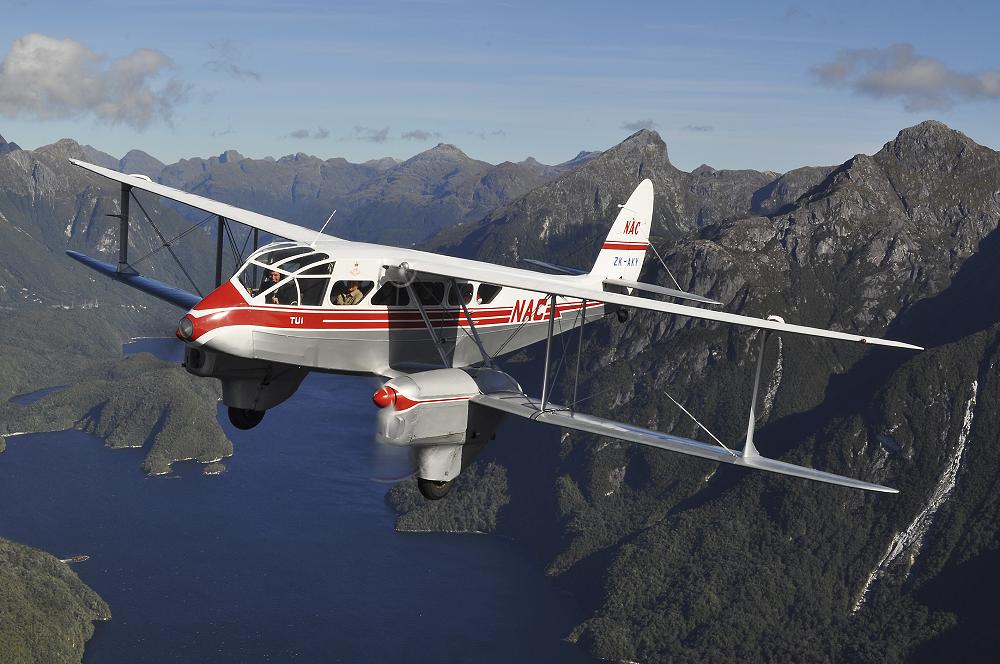 ZK-AKY first flew in New Zealand in October 1943 and was used by the RNZAF as a wartime communications aircraft (NZ525) – so a genuine warbird! ZK-AKY flew regularly for NAC on NZ air services until the early 1960s. Since that time it has been mainly based in Southland/Fiordland, fully restored in recent years, and is now owned and operated by the Croydon Aviation Heritage Trust and continues to be available for hire and is in pristine condition.