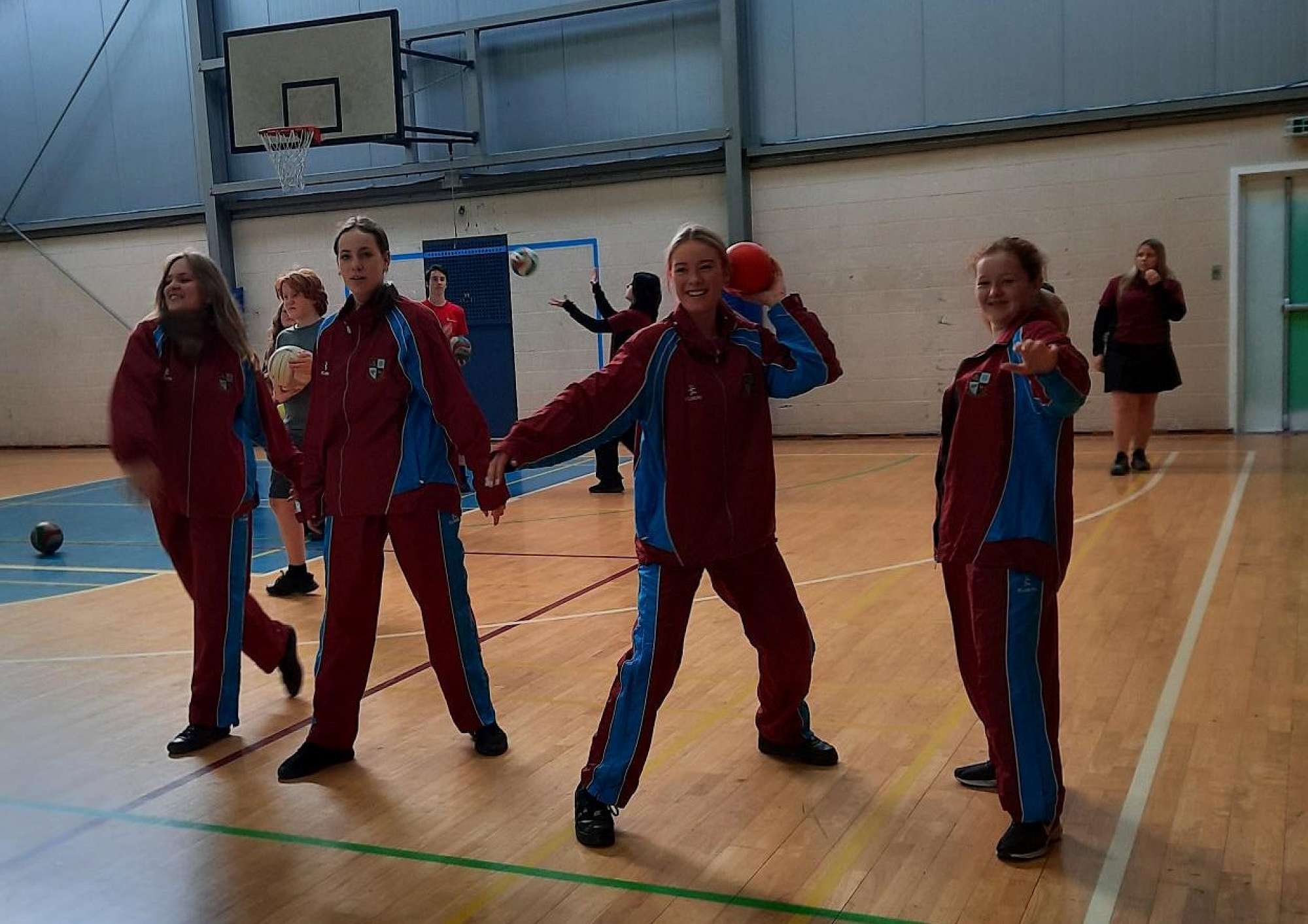 Although these students, above, often bring their 'change of PE gear' to lessons, one of the students was offered a tracksuit bottom as she had forgotten hers for the lesson. The other students saw the tracksuit and also wanted to wear the very old but still fashionable Nayland College tracksuit.