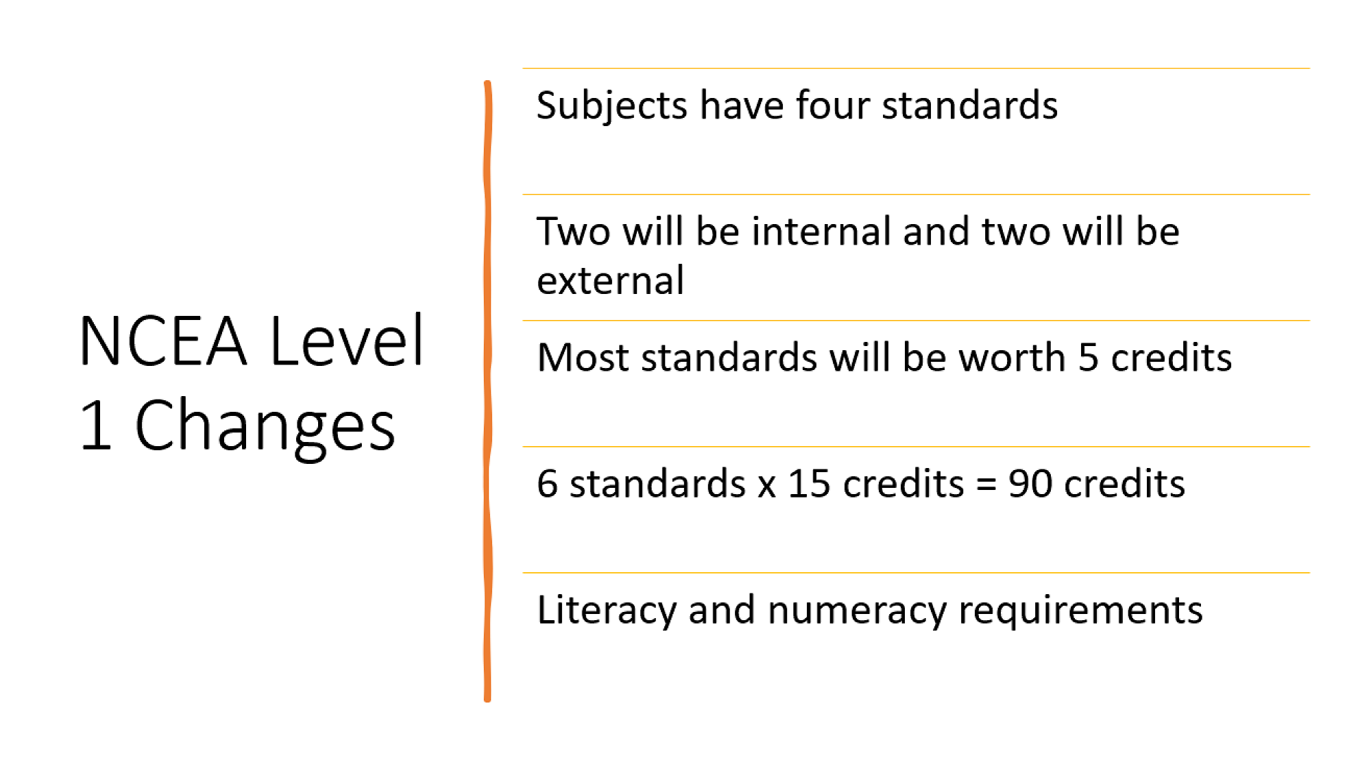 - Course endorsement requirements for 14 credits including a minimum of 3 external and 3 internal credits have not changed.