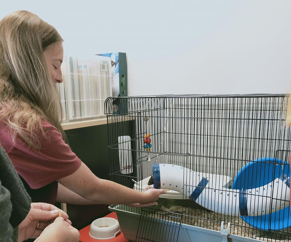 The students are rostered into groups to take turns sharing the responsibility of caring for Linguine and Remi in amongst their other classwork.