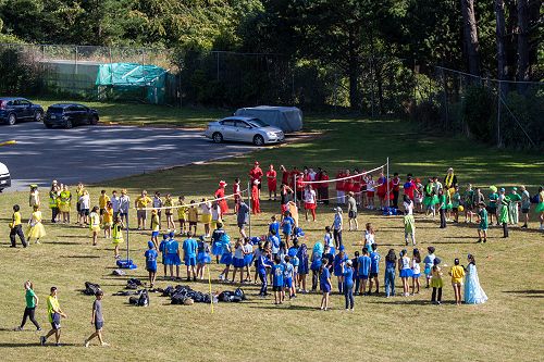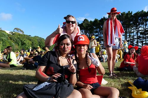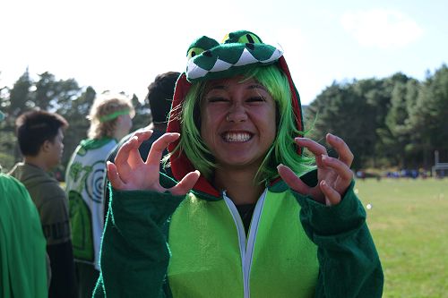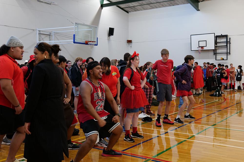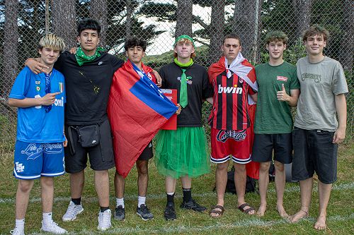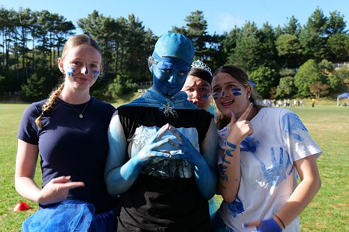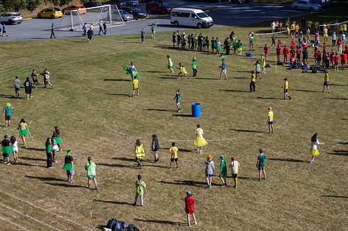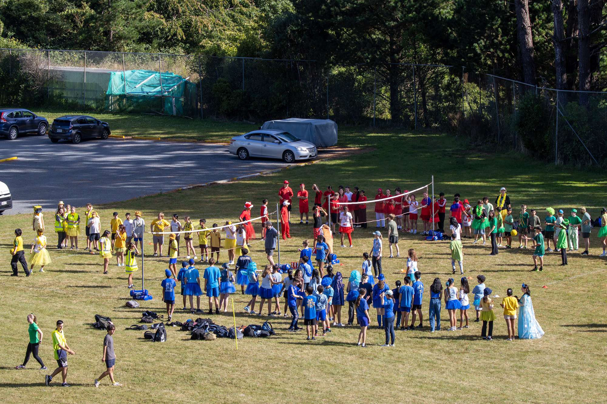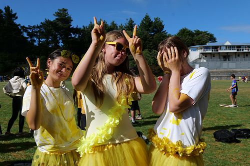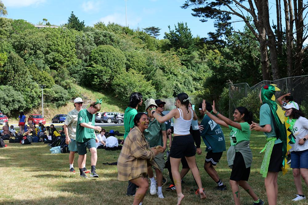 An array of kikorangi, kōwhai, kākāriki, and whero sprawled about the Newlands College field.