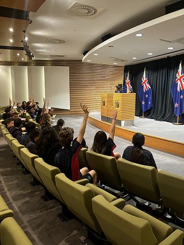 After we arrived and got introduced to our tour guide, we had to go through to security and then we began our tour. First of all, we went to the Education Department, which was a recreation of the Debating Chamber. There, we learned a little about the goings-on in parliament and some important bits. For example, we learned which important people resided in the Beehive such as the Prime Minister, Deputy Prime Minister, and the core ministers. We also learned a basic bit about how laws were made, originally drafted as bills and proposed to the debating chamber. Apart from that, we discussed taxes and how whenever we buy something we pay tax via GST. This is how the government gains their budget for social welfare. And then we moved on to see the real Debating Chamber.