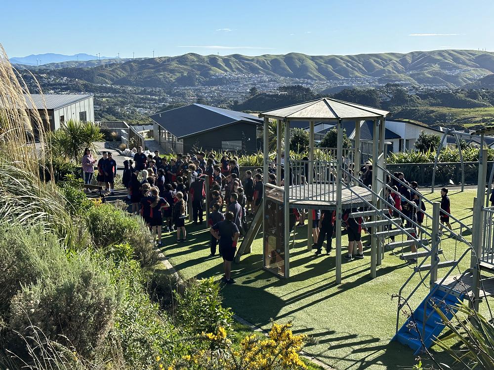 We have been on a couple of walks around our community. The first walk that we did took us to the Red Beech Avenue Playground in Woodridge. We walked up the hill next to the playground and observed the beautiful view of the sea and nature combined as one. The second walk that we went on took us past New World where we saw the Wahine Anchor. We enjoyed the walks because, although they were a bit tiring, they were enjoyable because of the scenic views that we got to experience with our friends.
