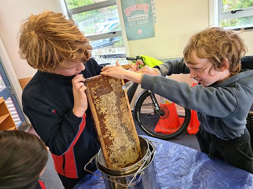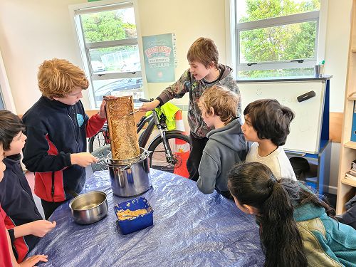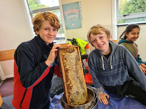 We harvested honey off the full frames and gave them a tour of the apiscope. The honey was delicious and everyone wanted more, even though honey is actually bee puke! (this same honey is available for purchase from Newlands Intermediate in December!)